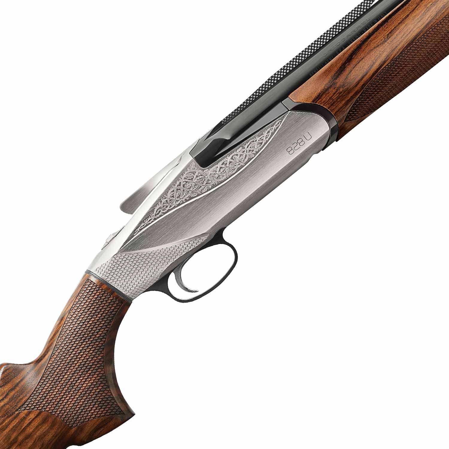 The 828U triggers reset when the top lever is unlocked instead of by opening the barrels on a traditional over/under-creating a smoother, more consistent opening action. In addition, the ejector system in the 828U is all contained in the barrel. This design allows for a stronger, more streamlined receiver by eliminating the need for linkages between the trigger group and the forend.