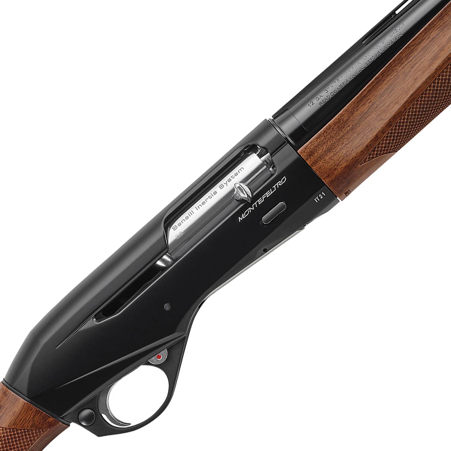 Description: Benelli Montefeltro Shotgun, 12ga. 26" Barrel. This high-quality 12 gauge semi-auto shotgun from Benelli is chambered for 3" 12 gauge shells and is the ideal choice for avid sport shooters. The Montefeltro features a 26" blued steel barrel with a walnut stock and forend set boasting a satin finish. The shotgun's receiver is anodized to match the barrel which utilizes the Crio System of choke tubes. Add this inertia-driven Montefeltro shotgun to your collection and experience the reliable performance a Benelli shotgun can offer.