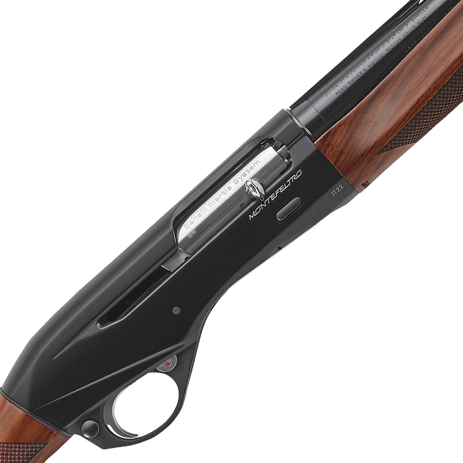 Description: Benelli Montefeltro Shotgun, 20ga. 26" Barrel. This quality semi-auto shotgun from Benelli is chambered for 3" 20 gauge shells and is an ideal choice for the avid sporting shooter. The Montefeltro features a 26" blued steel barrel and a walnut stock and forend set with a satin finish. The shotgun's receiver is anodized to match the barrel which utilizes the Crio System of choke tubes. Add this inertia-driven Montefeltro shotgun to your collection and experience the reliable performance a Benelli shotgun can offer.