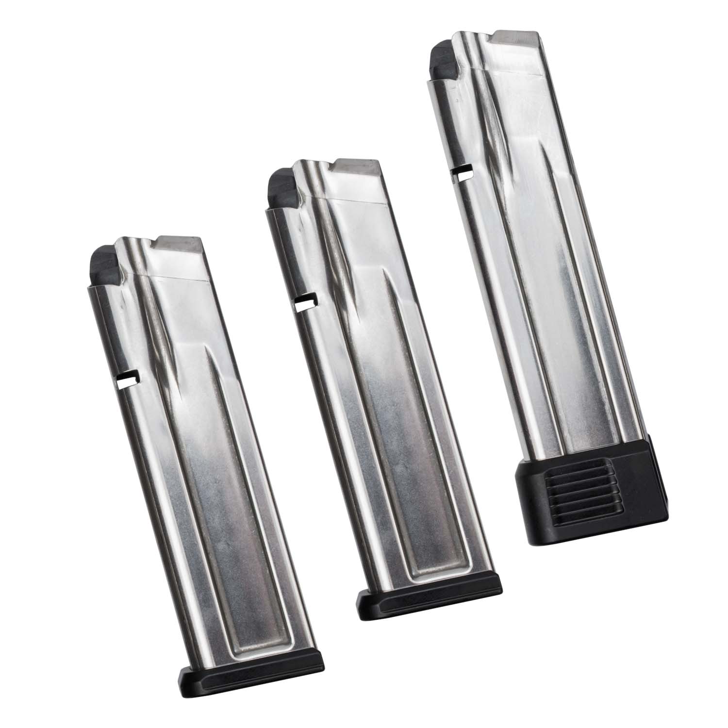 Ships with two (2) 17 round (126mm) & one (1) 20 round (140mm) 9mm magazines.