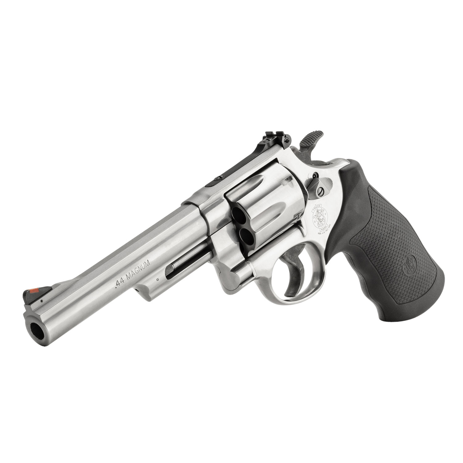 Description: Smith & Wesson 629 .44 MAG 6" Revolver. Crafted from stainless steel, this Smith & Wesson Model 629 N-Frame revolver boasts a 6" barrel and is chambered for .44 Rem Mag. This 6-shot revolver is loaded with various features including an internal lock to render the firearm inert when not in use. The 629 has a stainless steel cylinder, a ramped front sight, adjustable rear sight and a synthetic black grip. Great for handgun hunting, competition shooting or avid revolver collectors, the 629 reflects the high quality and standards expected from Smith and Wesson.