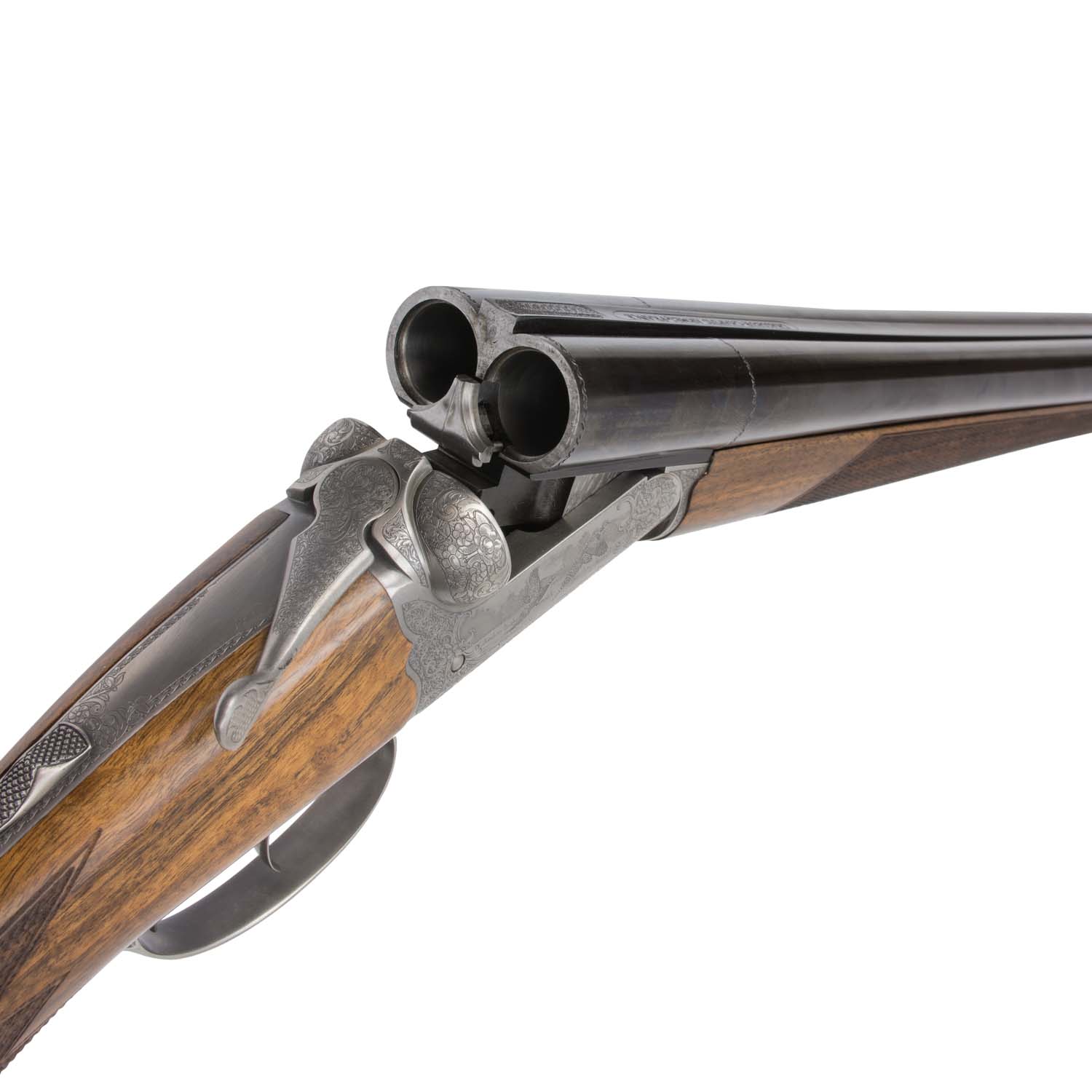 True to classic side-by-side form, the shotgun boasts a double trigger to give the shooter the selective choice of which barrel is firing on the fly.