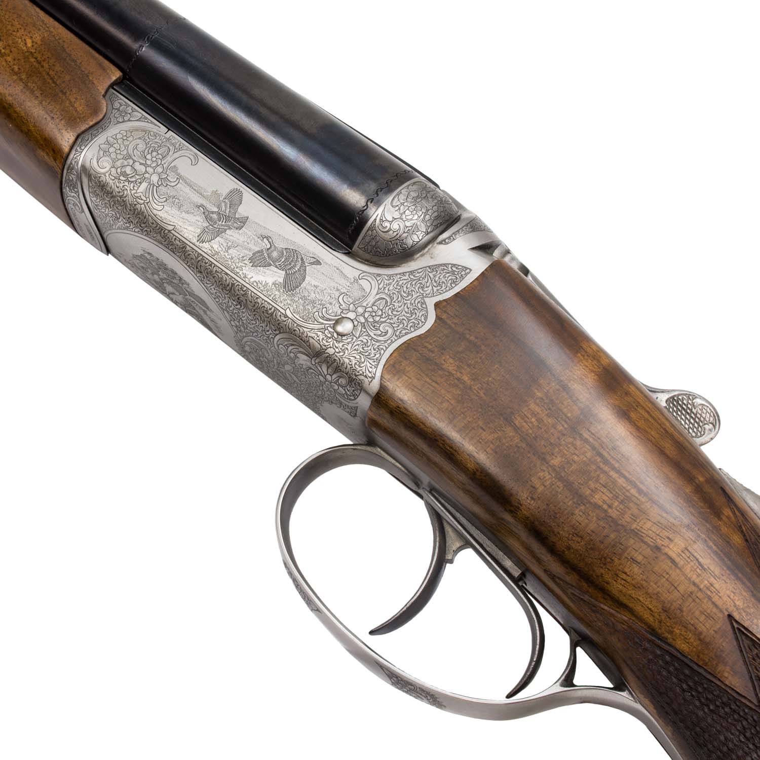 True to classic side-by-side form, the shotgun boasts a double trigger to give the shooter the selective choice of which barrel is firing on the fly.