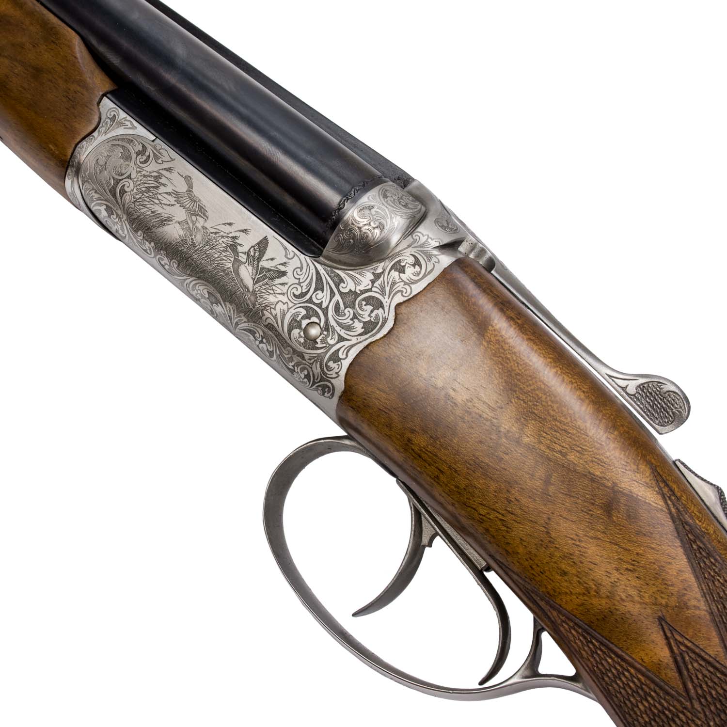 True to classic side-by-side form, the shotgun boasts a double trigger to give the shooter the selective choice of which barrel is firing on the fly.
