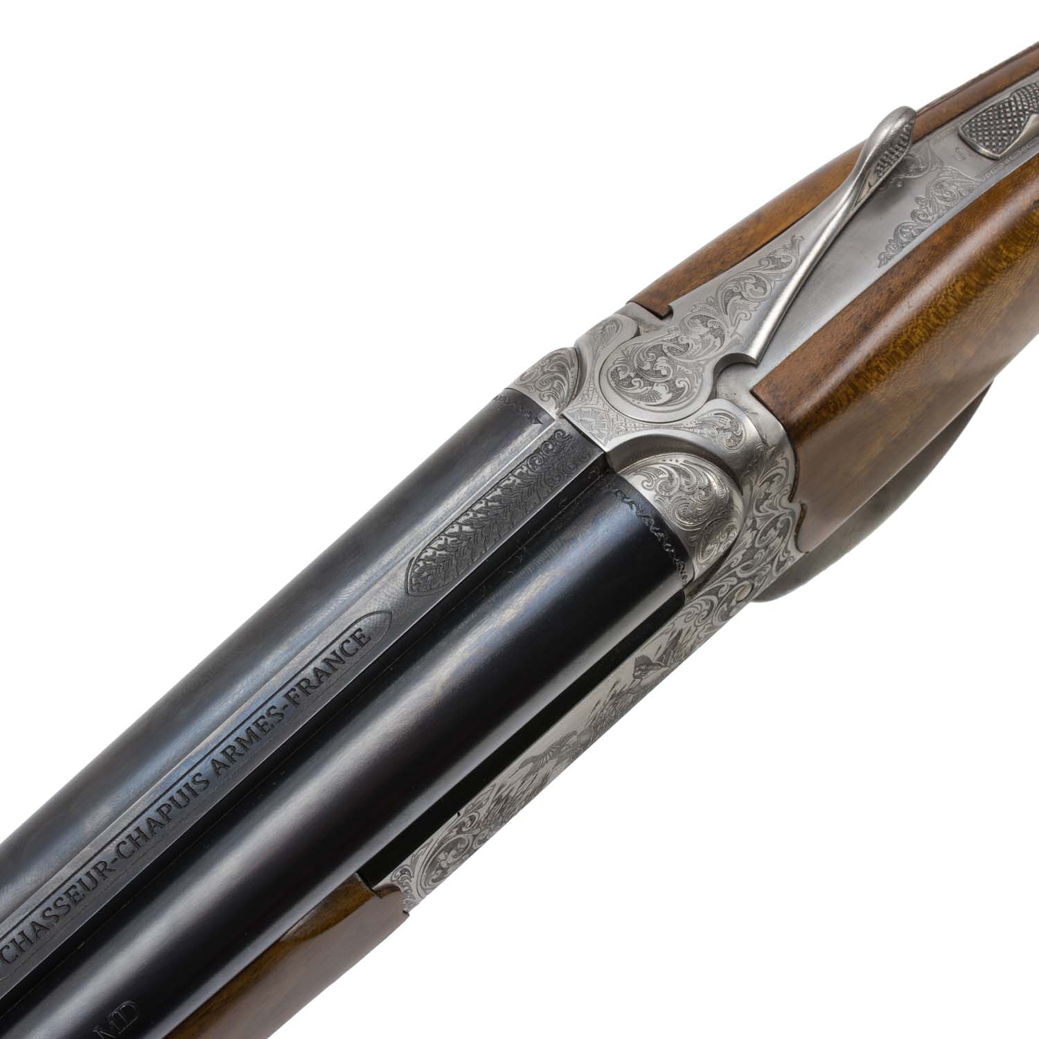 From the ground up, the Chasseur Classic shotgun is designed for the serious upland hunter. Whether you pursue pheasant on the Dakota high plains or quail and grouse in Oregon's Columbia Basin, a Chapuis Chasseur side by side will make the ideal companion. It ships with 5 interchangeable choke tubes and weighs in at about 5.5lbs - a well-balanced shotgun and a joy to carry. The Chasseur features AAA wood and laser engraved metalwork with acanthus scrolls and game scenes.