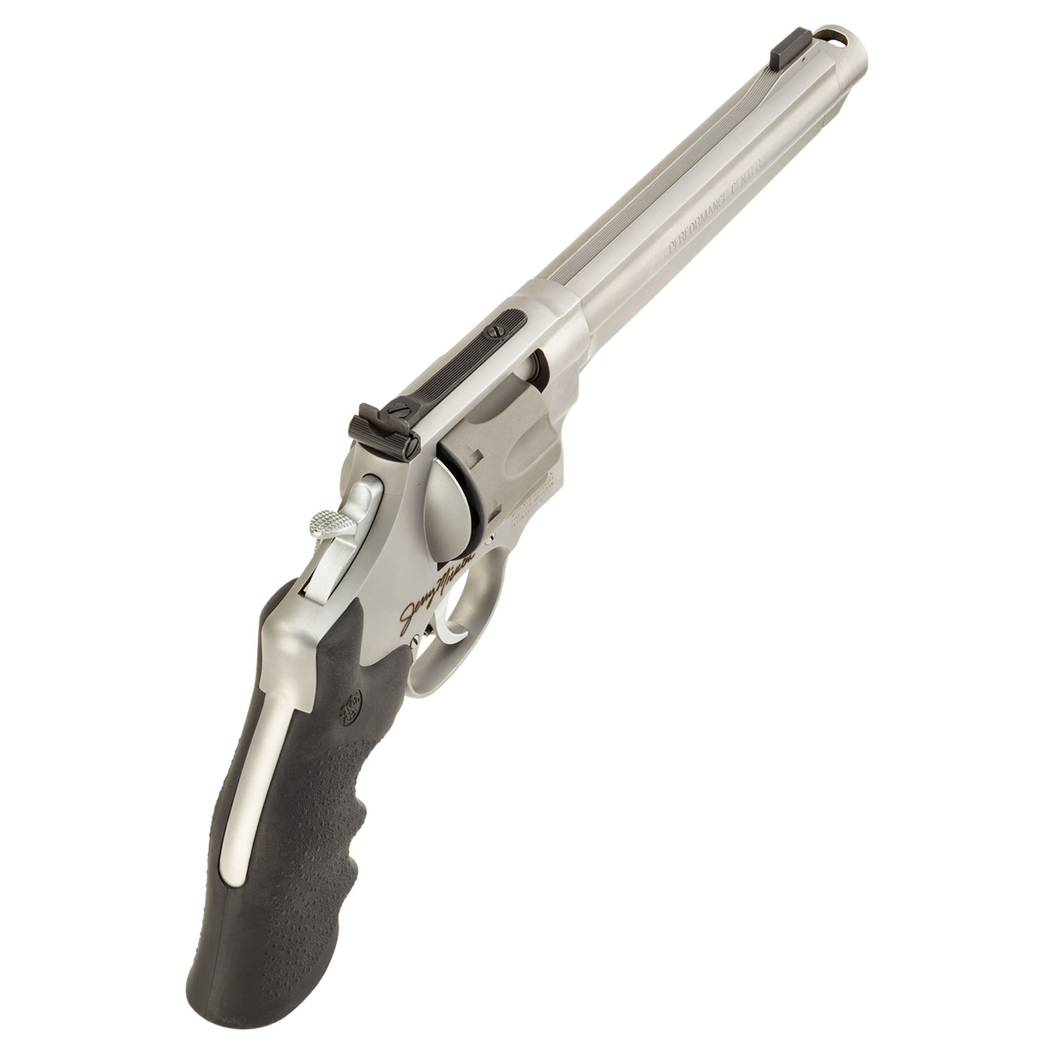 Description: Smith & Wesson 929 Performance Center, 9mm 8-Shot 6.5", Jerry Miculek Signature. The Smith & Wesson Performance Center Model 929 is a Jerry Miculek signature 8-shot N-Frame revolver chambered in 9mm. It features a 6.5" stainless steel barrel, titanium cylinder, removable compensator, synthetic grips, and comes with moon clips.