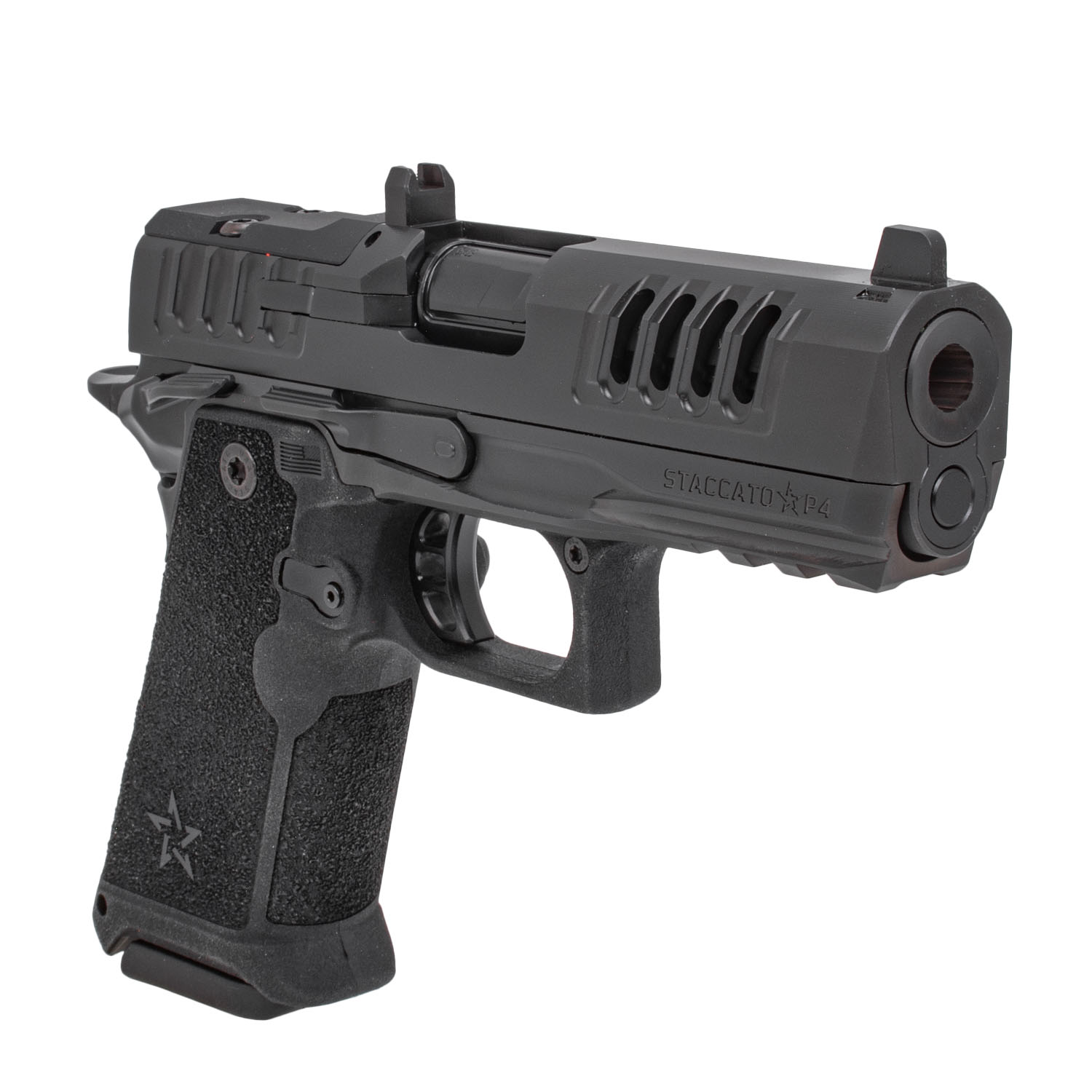 Staccato HD P4 Pistol w/ 4" 9mm DLC Barrel, X-Series Serrations, Trijicon Night Sights, 18rd Mags x4