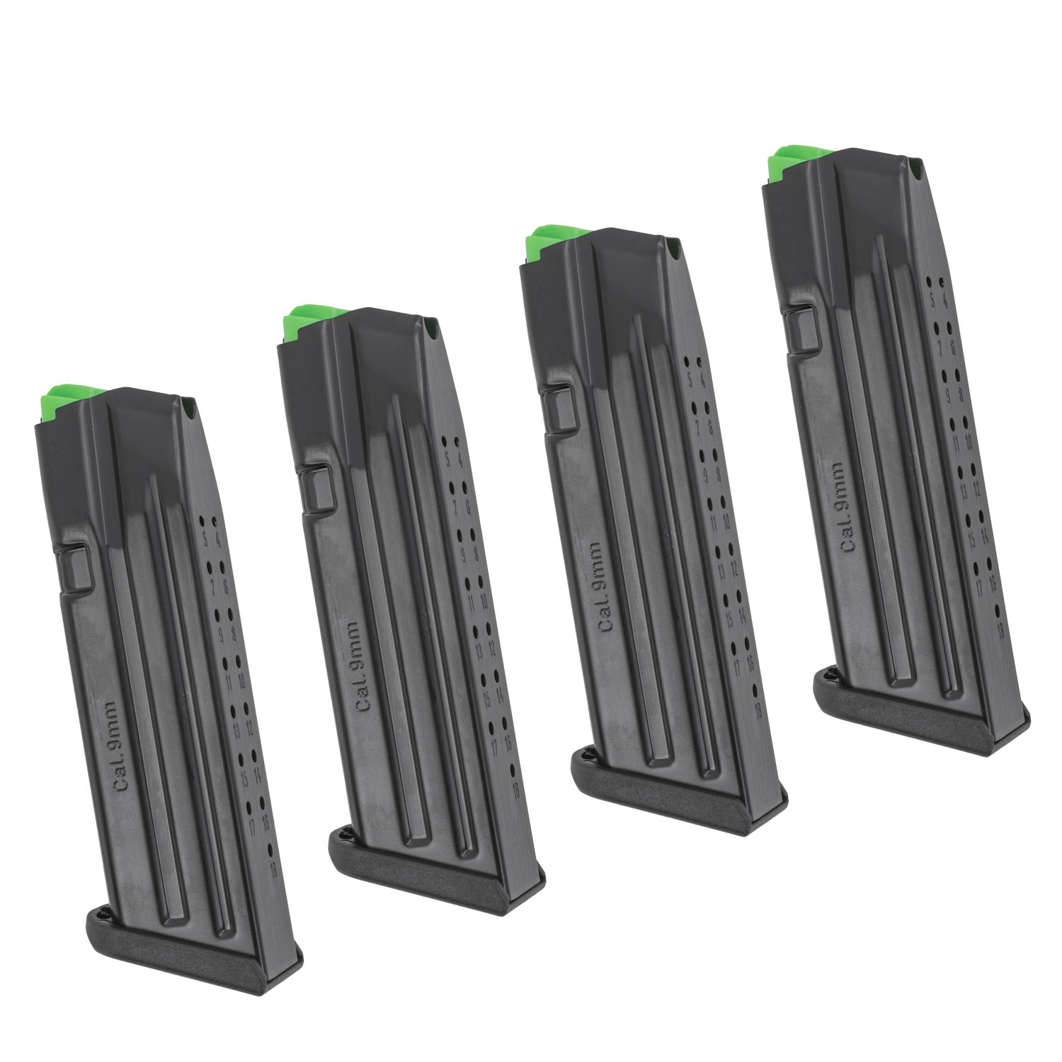 Ships with four (4) 18 round double-stacked Glock™ Pattern 9mm magazines.