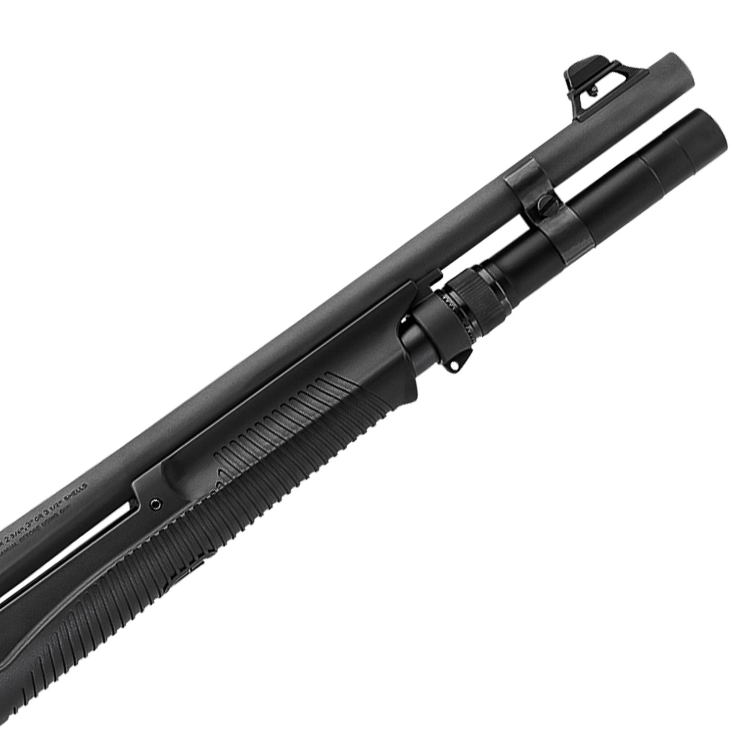 This shotgun features the tactical styled pistol grip on the buttstock. Along with a comfortable recoil pad and sling attachment points, the stock allows for quick decisive movements in any environment.