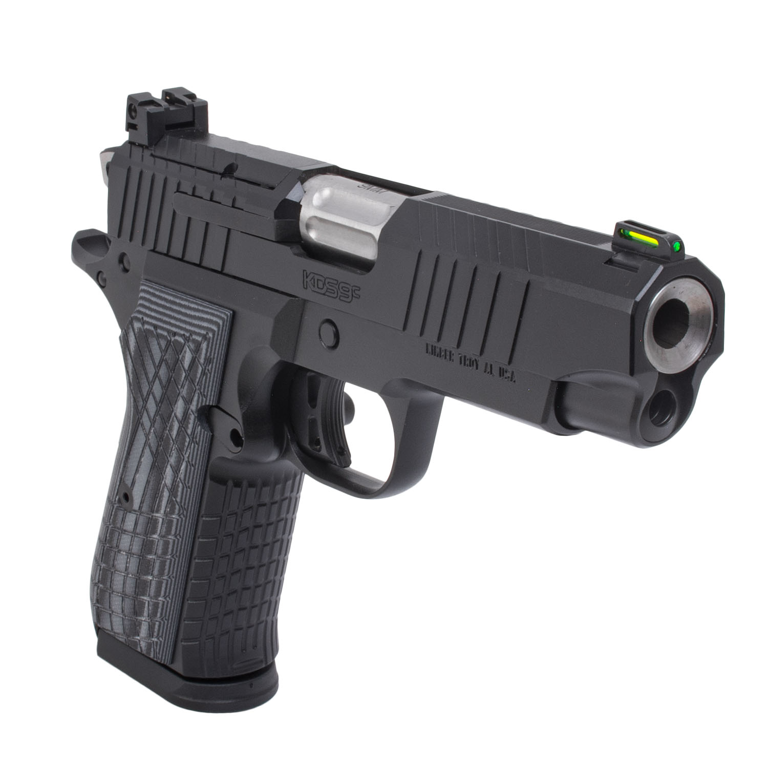 The KDS9c from Kimber is a testament to over 4 decades of the highest level of firearms manufacturing. The KDS9c was built from the ground up as a personal protection masterpiece. The barrel is fully fluted, crowned, and ramped. Our proprietary bore sizing process delivers match grade accuracy with every shot. Kimber engineers specified 7075 aerospace-grade aluminum to develop the frame featuring a fully integrated cross-hatch textured design for the front and the back strap that flows with the grip to deliver superior grip ergonomics. The magazine release is reversible for left and right-handed shooters. A crisp 3.5-4.5lb trigger pull comes standard as well as two 15-round magazines which anchor the KDS9c as the premier personal protection platform that enhances your ability to defend yourself no matter the situation.
