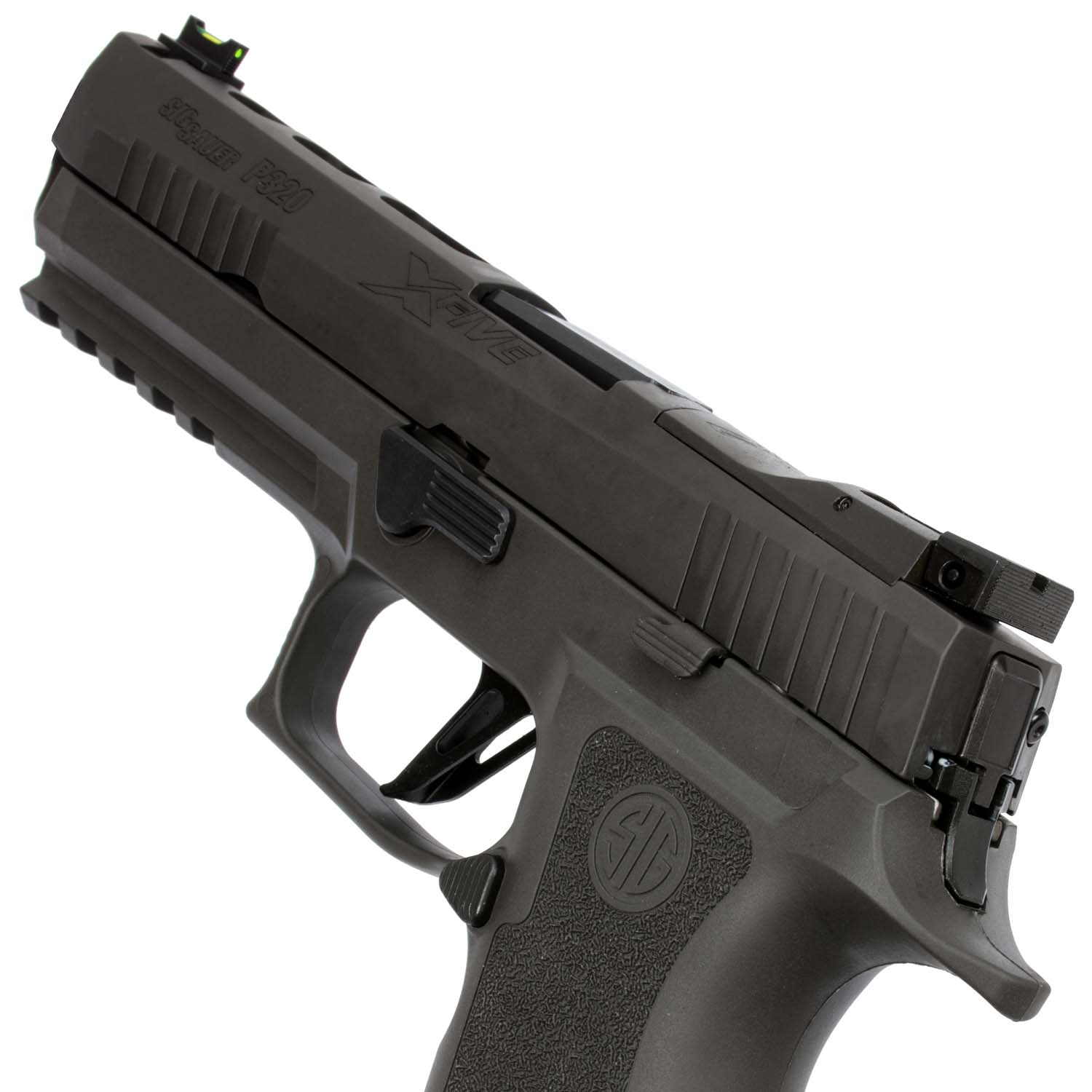 The flat trigger of this P320 is skeletonized, breaks cleanly and is ideal for competitions.