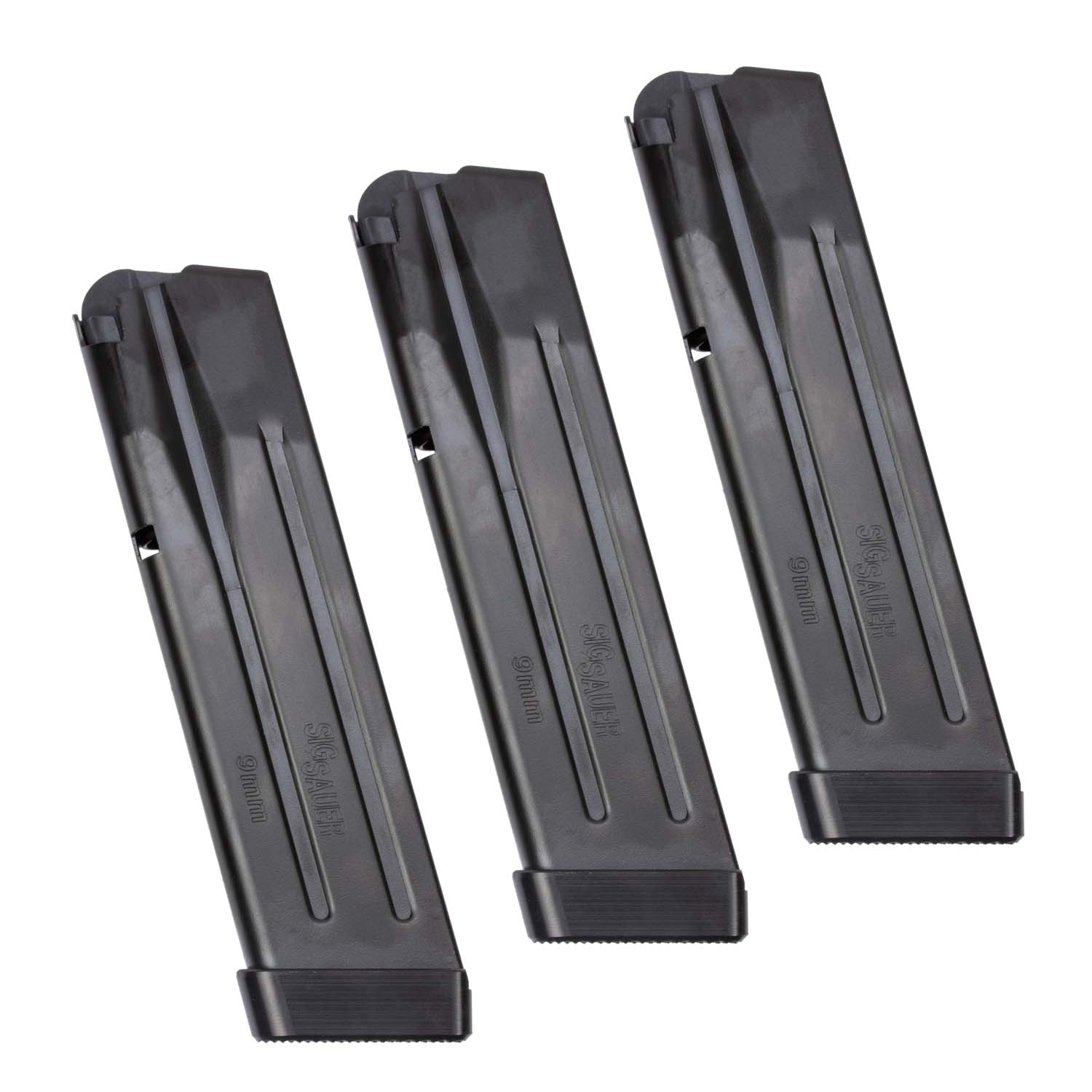 This pistol ships with three (3) 17 round magazines. These mags are constructed from a gloss blued steel and feature indicator holes to keep track of rounds loaded. The mags also have black anodized basepads with the LEGION logo emblazoned on them.