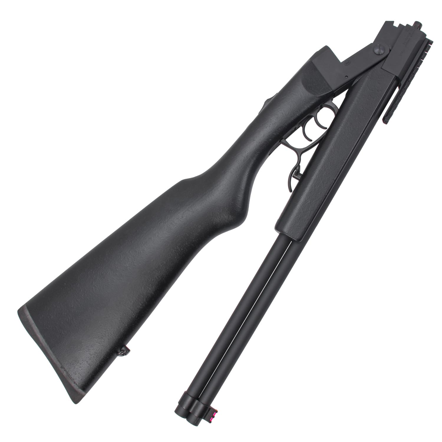 Description: Chiappa Double Badger Folding Shotgun/Rifle, .410/22LR, 20" Barrel, Black. Simple and purpose-driven, the Chiappa Double Badger is the basic survivalist/backpacking over-under rifle and shotgun combo that can fold up for easy transport anywhere. The break-open design of this firearm allows for compact storage as the barrels fold down toward the black textured wood stock. The Double Badger has 20" steel barrels; the top chambered in .22 LR with the bottom chambered for .410 bore shells. The forend of the rifle is made from the same black textured material as the stock. A Picatinny rail is at the rear of the barrels for optic installation while a fiber optic sight is at the front. Make your bug-out bag complete with this simple yet reliable survival rifle/shotgun from Chiappa.