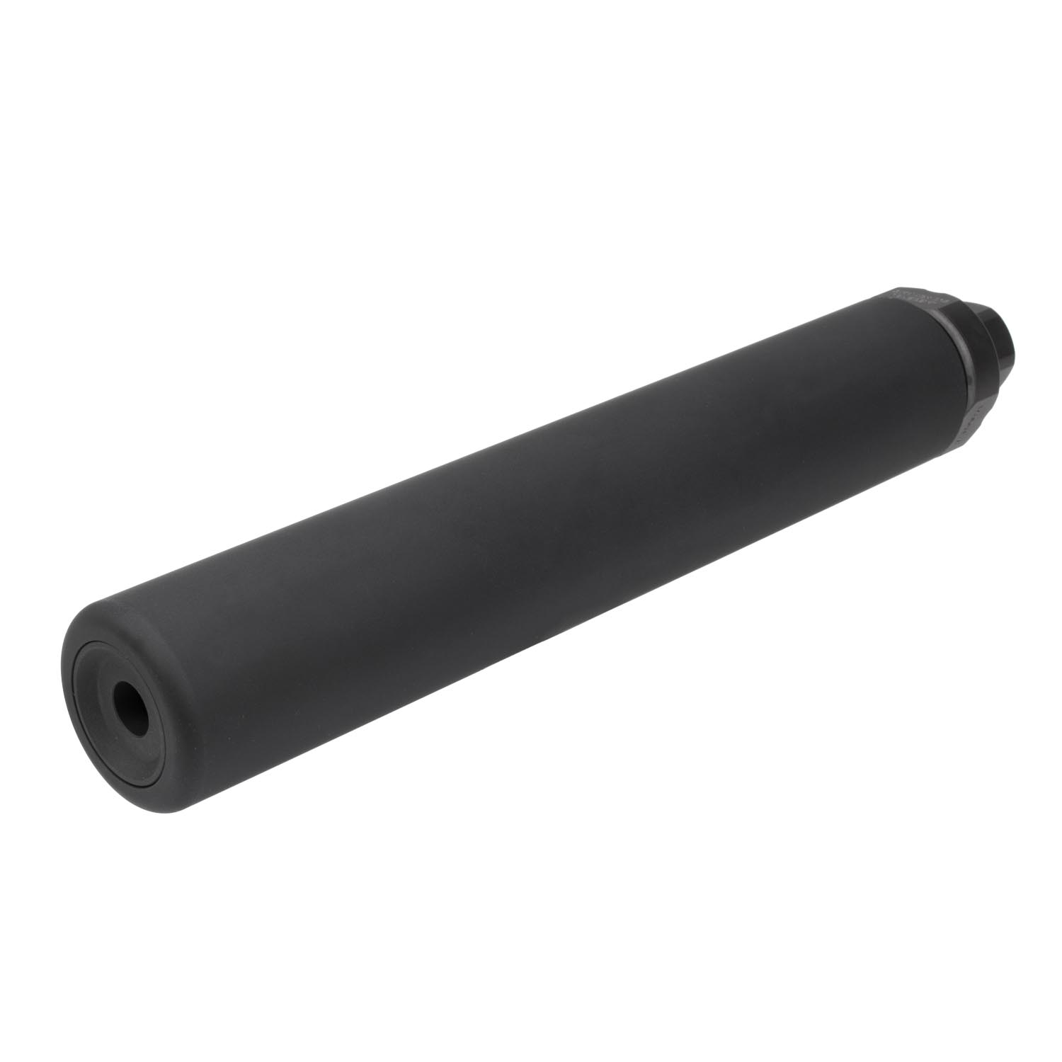Description: AAC Jaeger .30cal Suppressor, 5/8-24 Threads. The Jaeger suppressor series from Advanced Armament Company (AAC) is the ideal choice for .30 cal suppression when out on the hunt. The core / outer tube is constructed from 7075 T6 aluminum with a black anodized finish and features a very strong titanium direct thread mount to ensure maximum lightweight operation without sacrificing performance. This suppressor fits firearms chambered up to .300 Win Mag and has 5/8" x 24 TPI threading on its mount. Weighing just 13.9oz this versatile silencer measures 9.28" long with a diameter of 1.47". The Jaeger reduces the sound of the firing rifle by around 32 decibels.