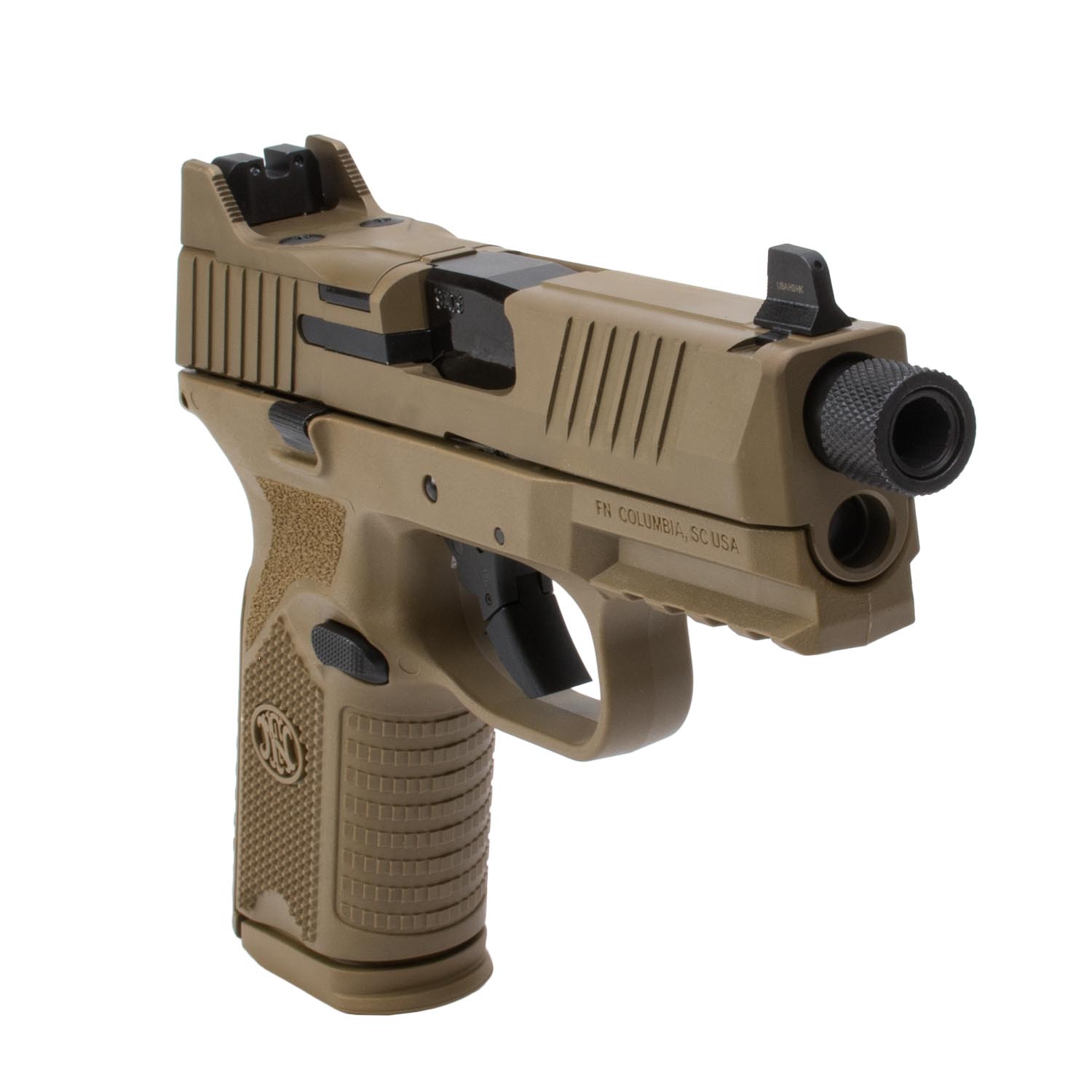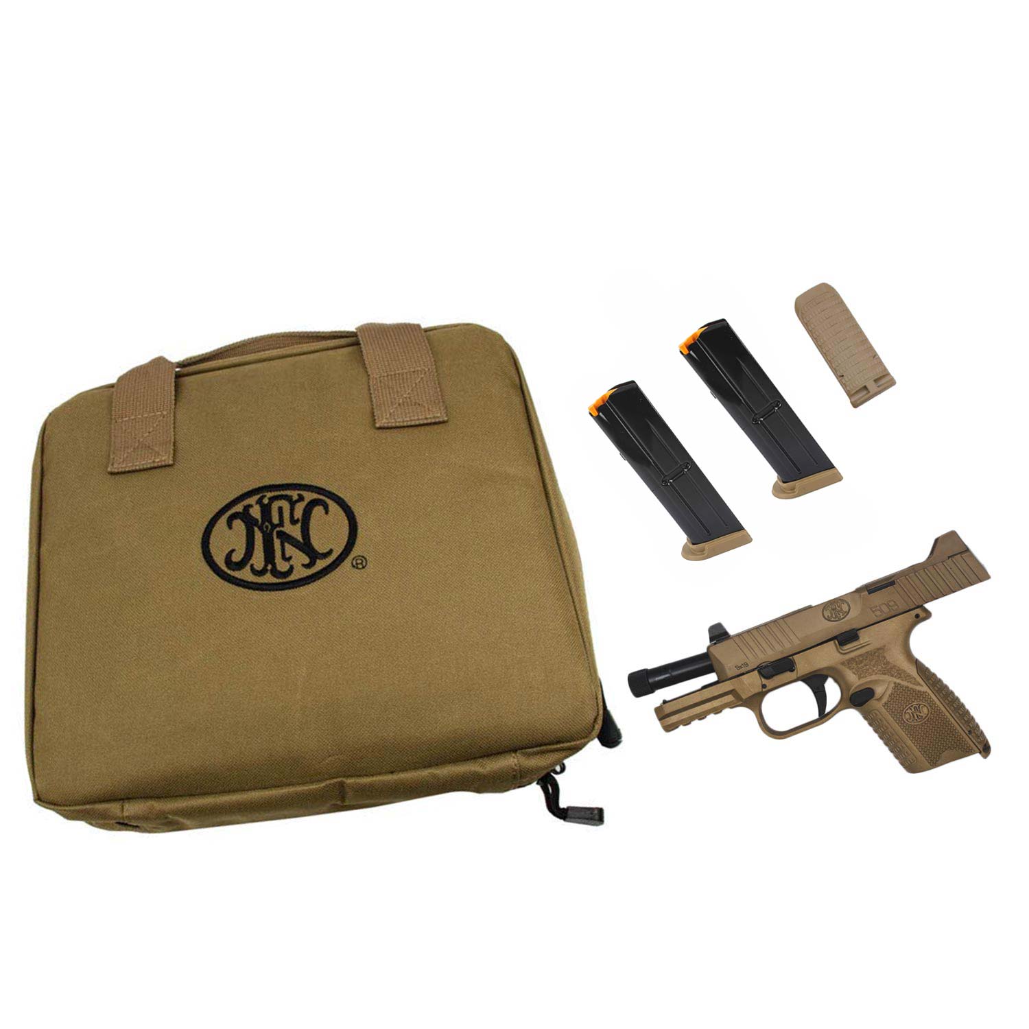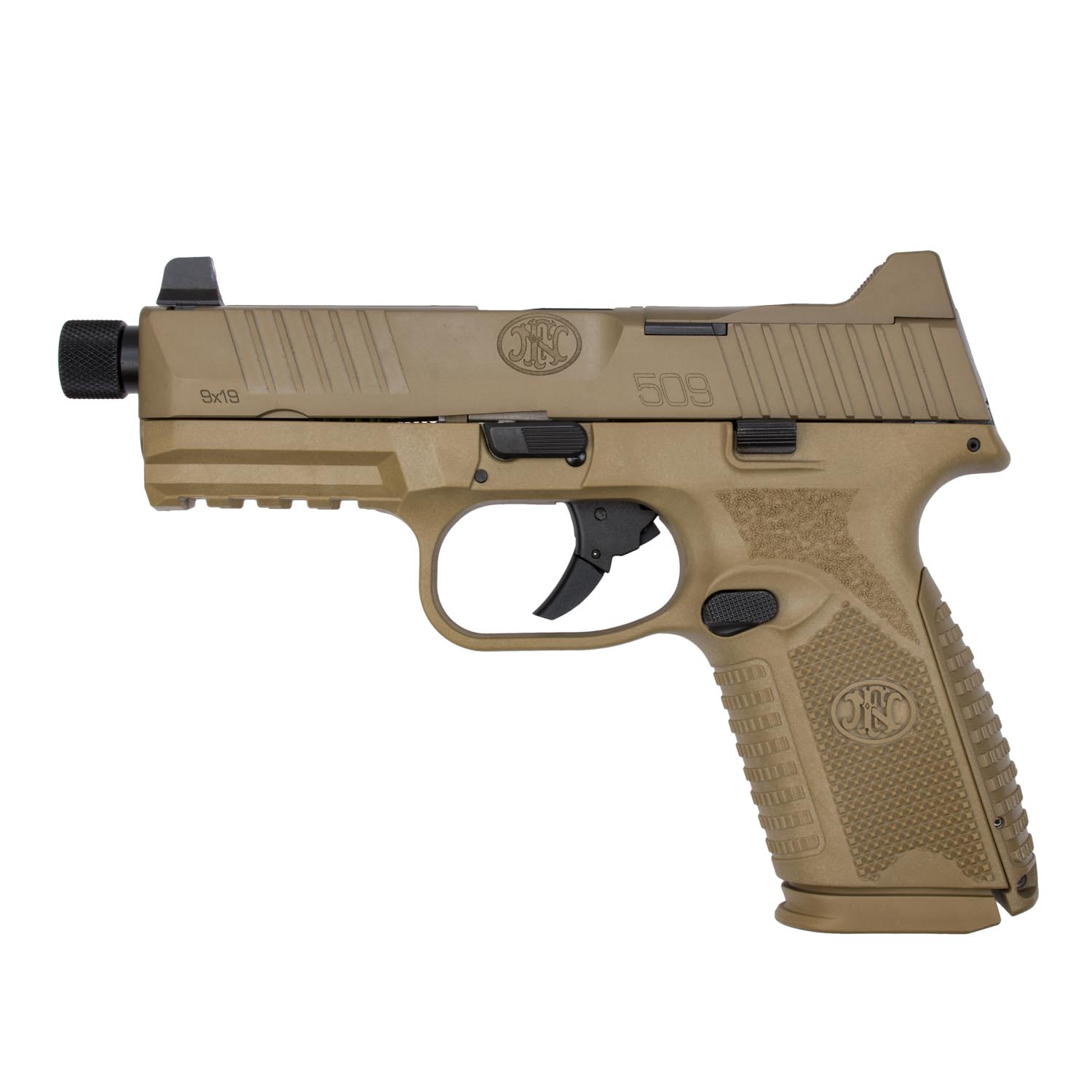 Description: FN 509 Midsize Tactical NMS, FDE/FDE NS, (2) 10rd. Mags. This midsize-version of the FN 509 includes significant design improvements within the FN 509 family of pistols and boasts a flat dark earth finish. This striker-fired pistol is chambered for 9mm. It also features the patent-pending FN Low-Profile Optics Mounting System which accepts many of the commercially-available miniature red dot optics along with suppressor-height green tritium night sights installed. The 509 Tactical comes standard with a 4-1/2" hammer-forged, stainless-steel barrel. The barrel is threaded in 1/2"-28 and comes with a thread protector. Aggressive serrations on the slide provide positive grip along with the raised sight wings that give the user a textured ramp for racking the pistol against nearly any surface. This pistol ships in a soft case with two 10 round magazines.