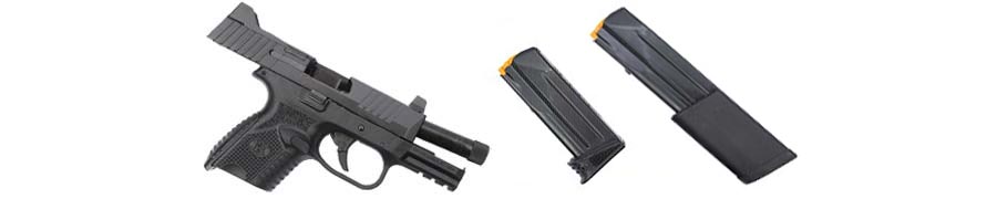 A 12 and 24 round magazine is included with this pistol. Each mag fits flawlessly with the pistol to ensure an even, continued, grip.