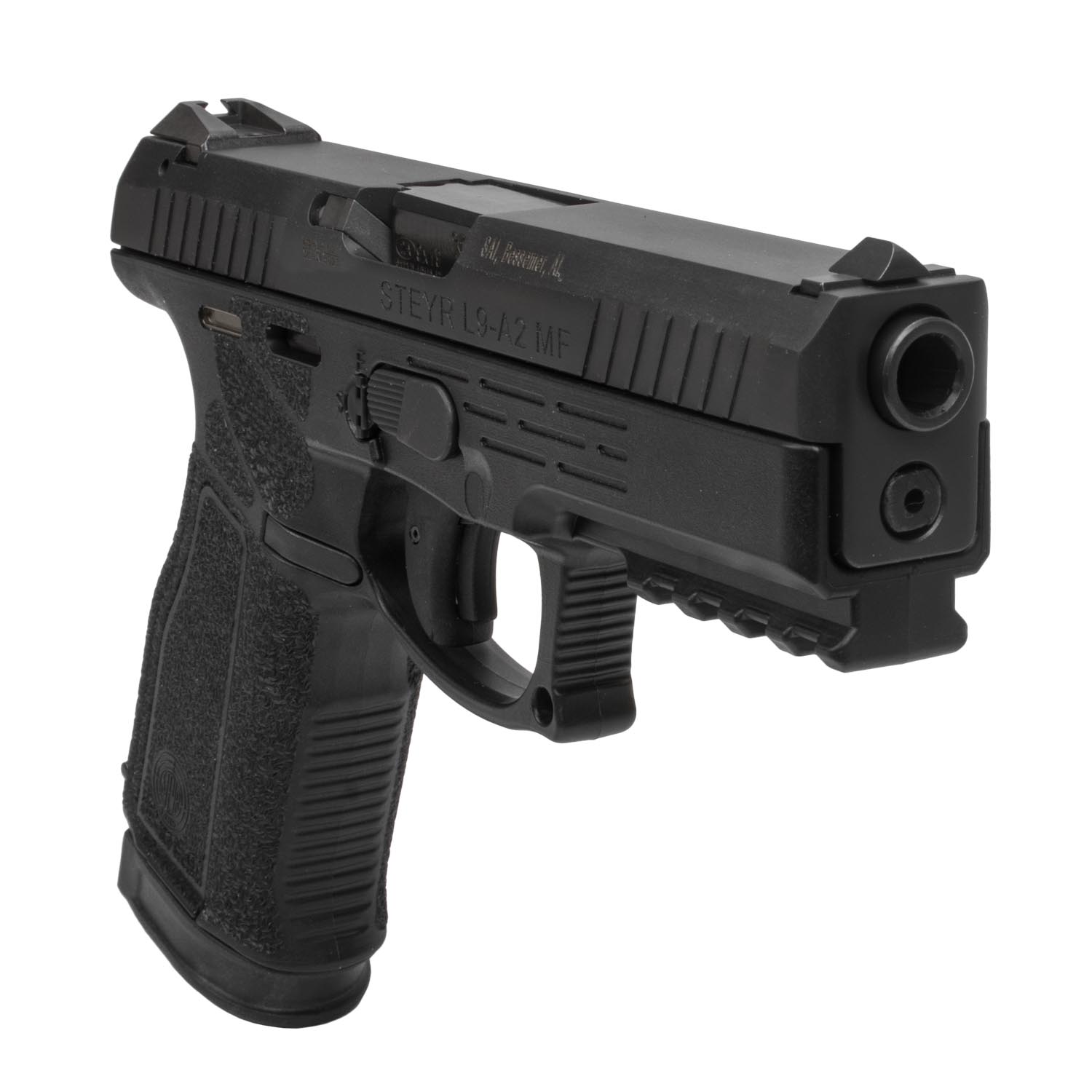 Description: Steyr L9-A2 MF Pistol, 9mm 4.5" Barrel. A new version to the L9 family from Steyr Arms, the L9-A2 full-size pistol is chambered in 9mm and ships with two 17 round magazines. This handgun features a 4.5" barrel, flared mag well, front / rear slide serrations and the proprietary Steyr trapezoid sights. Built upon a black polymer frame, the L9-A2 comes with several replaceable backstraps to ensure a perfect fit for any sized hand. The pistol also has a keyed safety lock to render the gun inert. Great for everyday carry, home defense or fun at the range, the Steyr L9-A2 MF is an ideal choice for any level of shooter.