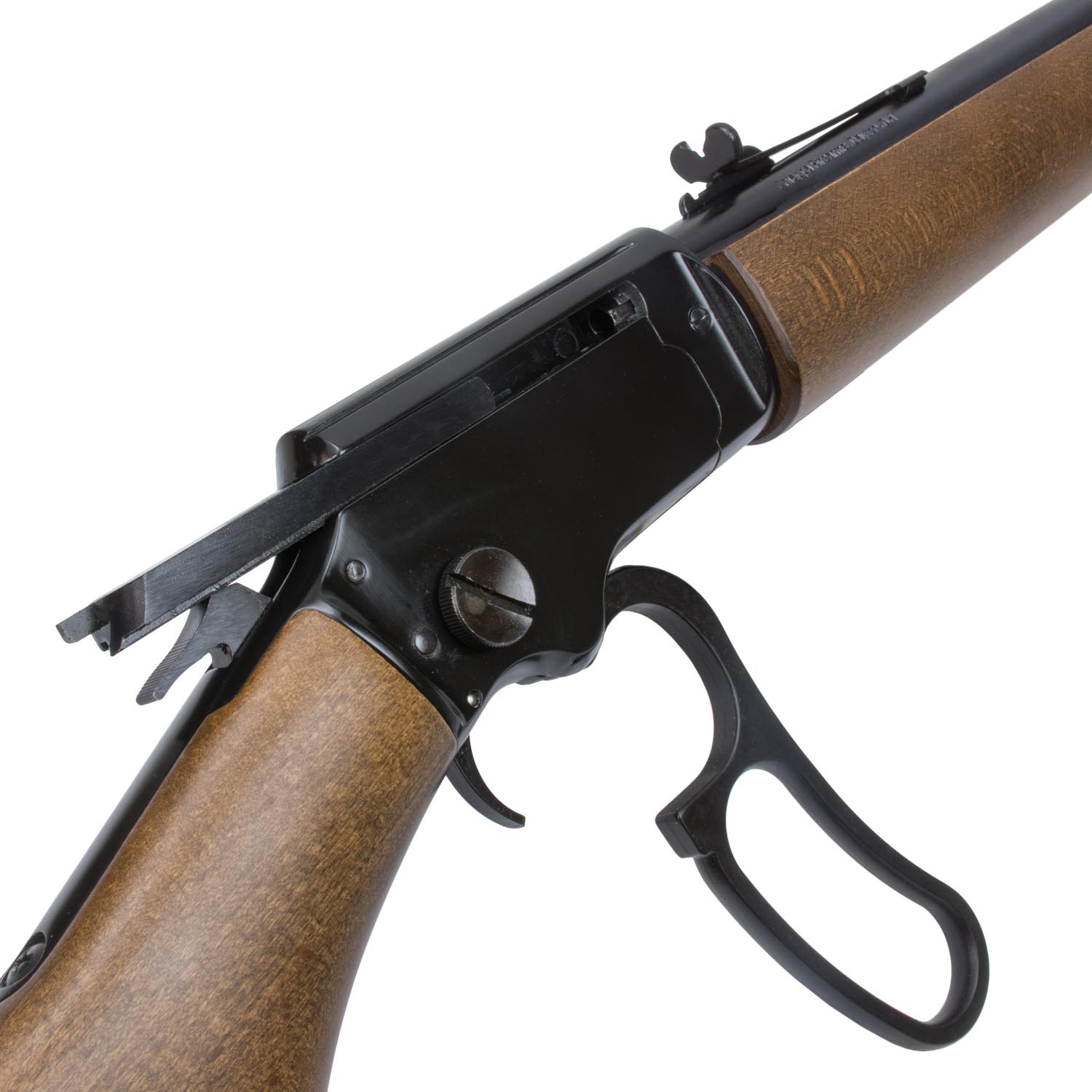 Description: Chiappa LA322 Carbine Standard Takedown Rifle, 22LR, 18.5" Barrel, Wood Stock. Representing the classic American lever-action design, the Chiappa LA322 is the fun plinking rifle chambered in .22 LR with a 15 round tube magazine. The simple design of this firearm provides reliable shots with every trigger pull and positive lever manipulation. The LA322 features an 18.5" barrel, satin-finished stock and forearm, a fixed tunnel front sight and a rear buckhorn-style sight that is adjustable for both elevation and windage. Have fun at the range with this easy-to-shoot and reliable homage to the classic lever-action American rifle.