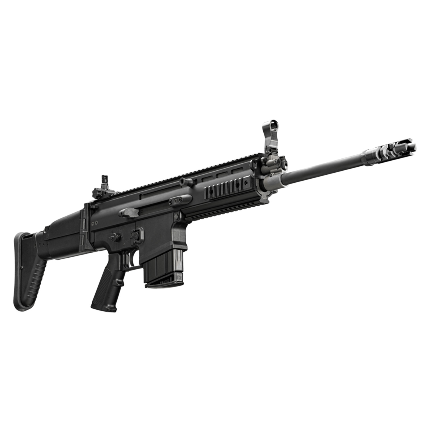 The legendary FN SCAR 17S is upgraded with Non-Reciprocating Charging Handles. The new, dual charging handles enable any shooting position, grip style or optic choice, user swappable in the field. The FN SCAR 17S ensures any braced or barrier-contact position shoots flawlessly. The rugged, monolithic upper receiver with a full-length MIL-STD-1913 rail provides more space for rail-mounted accessories, and a folding buttstock fits any shooter with adjustable length of pull and cheek rest height. The FN SCAR 17S is the benchmark for accuracy and versatility from a light recoiling, piston-driven platform.