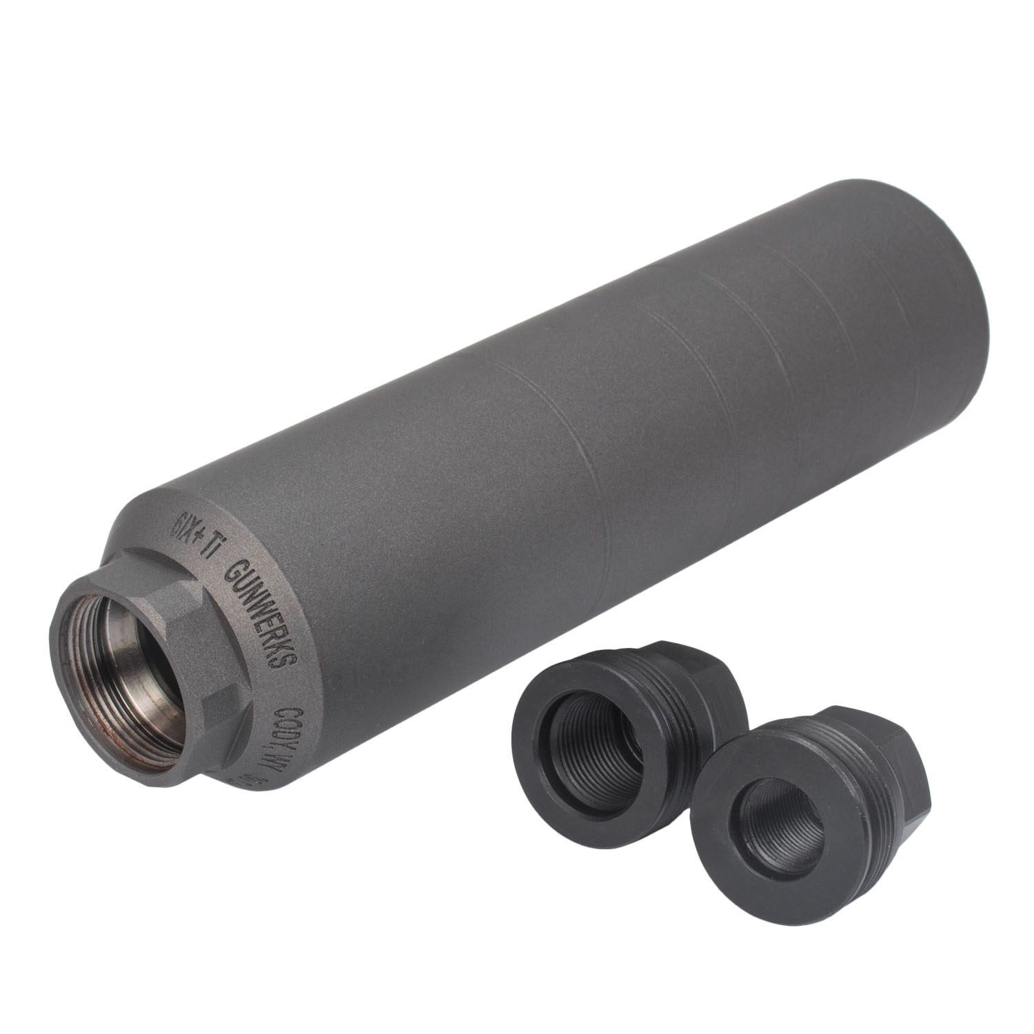 Gunwerks 6IX+ Titanium Suppressor, .30Cal, 1/2-28 & 5/8-24 Adapters