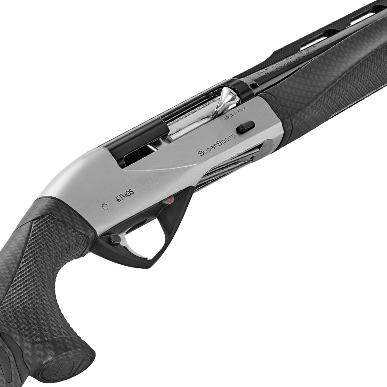 Description: Benelli Ethos SuperSport Shotgun, 12ga. 30" Barrel. This high-quality semi-auto shotgun from Benelli is chambered for 3" 12 gauge shells and is an ideal choice for the avid sporting shooter. The Ethos Super Sport features a 30" blued steel barrel with carbon fiber stock and forend set for lighter weight and more maneuverability. The shotgun's receiver is nickel-plated and the barrel utilizes the Crio System of choke tubes - extended chokes included. Add this head-turning Ethos shotgun to your collection and experience the reliable performance a Benelli shotgun can offer.