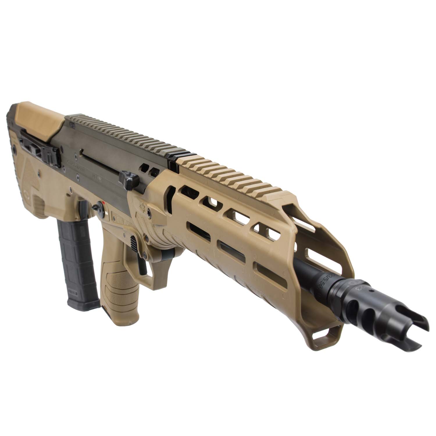 Description: Desert Tech MDRx Rifle, 5.56mm/223Rem Forward Eject, 16" Barrel, FDE. The Micro Dynamic Rifle (MDRx) from Desert Tech is designed and manufactured to high performance standards which provide the user with a fully capable long rifle in a compact urban form factor. With a bullpup design and a 16" barrel chambered in .223 Rem / 5.56x45mm, the flat dark earth sporter stock of the rifle boasts ambidextrous controls and a 30 round capacity P-MAG magazine. The well-balanced and modern design of this rifle gives the shooter excellent target acquisition, maneuverability, and comfort in the field. The MDRx is the future of urban rifle design, being far shorter than any conventional rifle of similar power. Desert Tech rifles are proudly made in the USA.