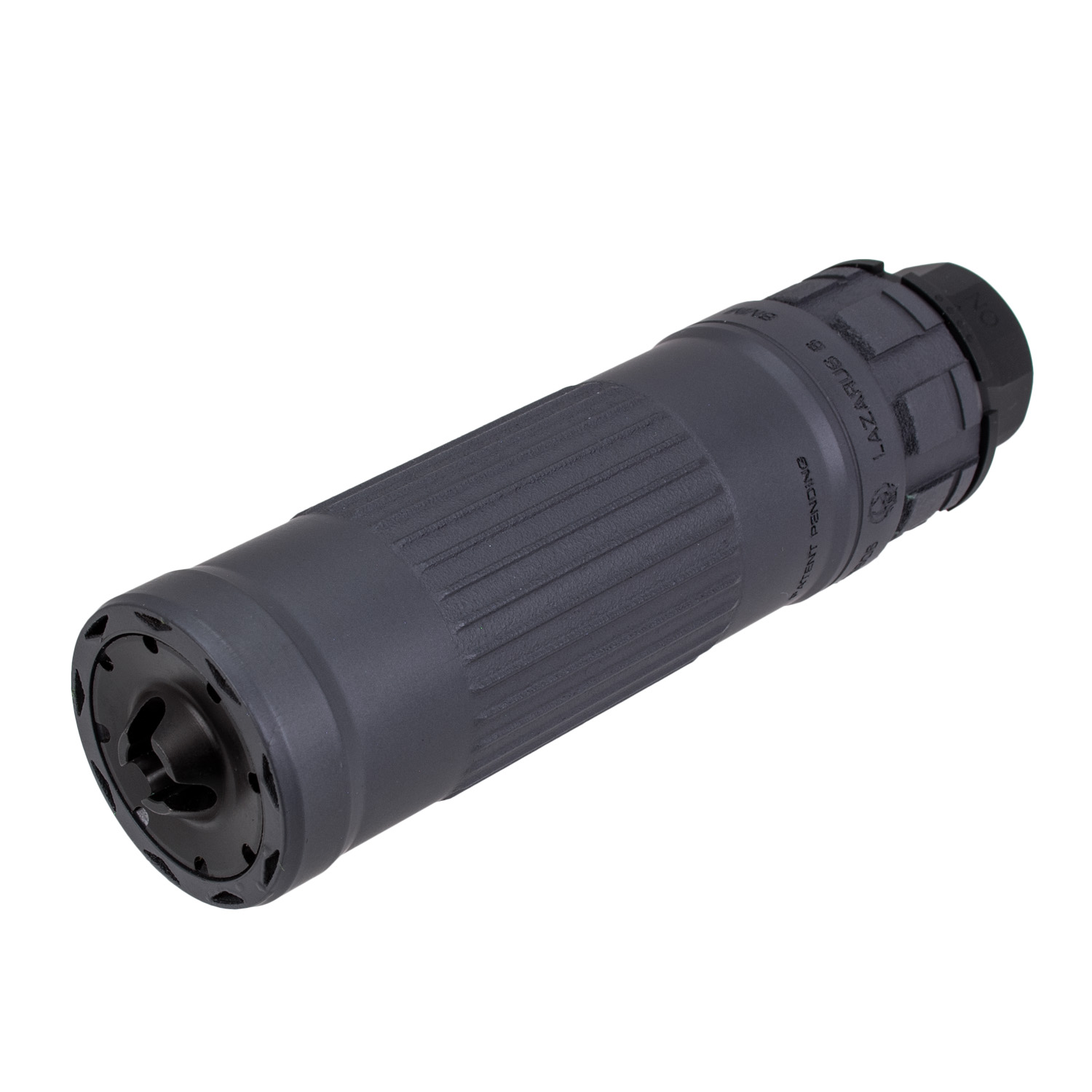 Description: Dead Air Lazarus 6 6mm/5.56mm Suppressor, XENO Mount, Sniper Gray. Constructed of a strong Haynes 282 superalloy steel with Triskelion baffles, the Lazarus 6 suppressor from Dead Air Silencers is a reliable workhorse of sound mitigation for your rifle chambered in 6mm, 5.56mm or other like calibers. Featuring a XENO adapter that threads into the 1.375 x 28" HUB socket on the included 1/2" x 28 TPI direct-threaded 3-prong flash hider, the suppressor is easy to install and swap when needed. The can also boasts a Sniper Gray Cerakote finish. The Lazarus 6 has a robust design, weighing in at 16.5oz with total dimensions of 5.89" x 1.63". The Lazarus 6 is compatible with all Dead Air R-Series front caps. Full-auto rated and designed with a large linear ribbed area, the Lazarus 6 silencer perfectly pairs with your favorite firearm, giving you the unparalleled sound-dampening power of Dead Air.