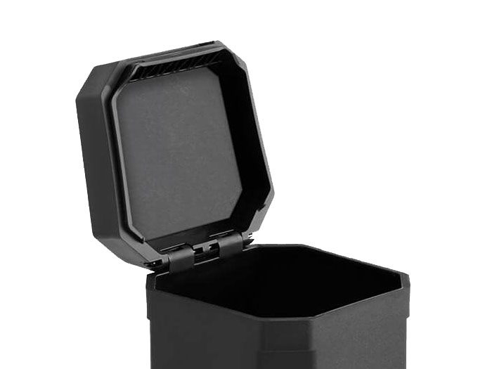 - Protective positive friction lid closure with durable steel hinge pin