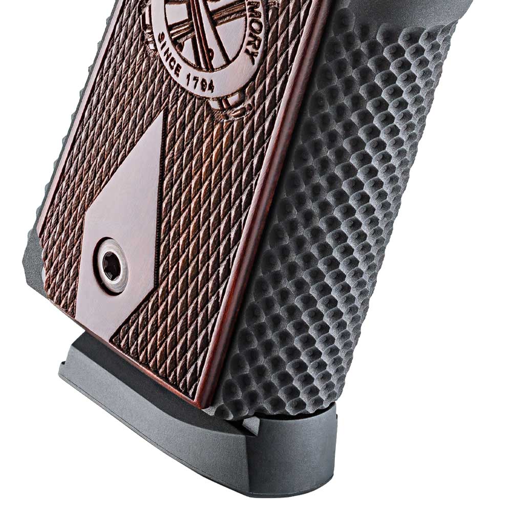 Posi-Lock checkering on the front strap combines with thin-line Cross-Cannon Double Diamond Cocobolo grips to create an exceptionally tight shooting foundation.