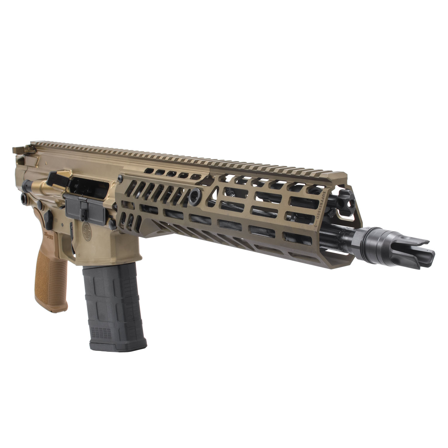 Description: Sig Sauer MCX SPEAR Pistol, 7.62x51 NATO 13" Barrel, 20 Round Magazine. Developed with the best features of the original MCX and as the civilian model of the Army's new XM7 rifle, this MCX Spear pistol from Sig Sauer boasts a 13" barrel, a coyote anodized finish, a rugged handguard/receiver design and is chambered for 7.62x51mm. The barrel has a 5/8" x 24 TPI thread cut with a QD suppressor-ready flash hider installed. The reinforced free-floating M-LOK handguard surrounds the chrome/molly steel interchangeable barrel and the two-position adjustable gas valve. A curved Matchlite Duo match-grade trigger is installed and the pistol's controls are fully ambidextrous. The MCX Spear is built for reliability and offers the same outstanding quality you would expect from any other Sig platform. Outfit this pistol with all the accessories you want to tailor it to your specific comfort, shooting and situational needs.