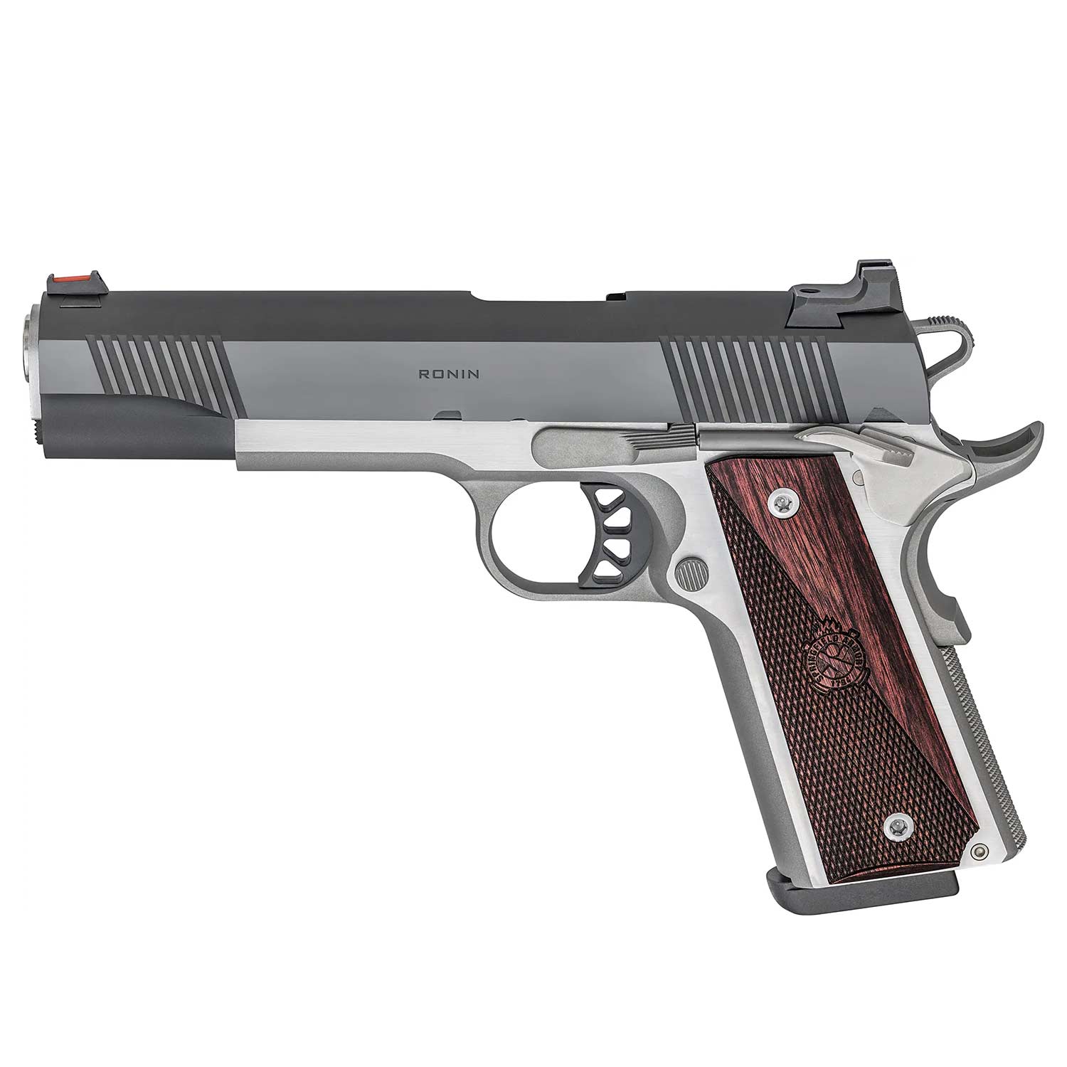The Ronin 1911 provides shooters with a pistol that combines classic styling with modern features, the result of thoroughly modern precision manufacturing mixed with a traditional approach to quality and performance. Configured as a full-size 5" gun, the 8+1 Ronin in 10mm features a forged steel slide and frame as well as a hammer-forged barrel for unparalleled durability and strength - ideal for a pistol harnessing the impressive power of the ever-popular 10mm cartridge.