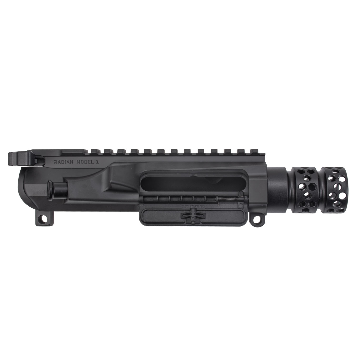 The Radian Model 1 Upper Receiver is precision CNC machined as a matching set with the handguard, structurally reinforced in critical areas for improved strength and rigidity. The upper receiver is cut from billet 7075-T6 aluminum and assembled with quality components. Every surface has been precision machined and chamfered to ensure no uncomfortable, sharp edges can be found. The upper is then sprayed with Radian Black Cerakote for an eye-catching finish.