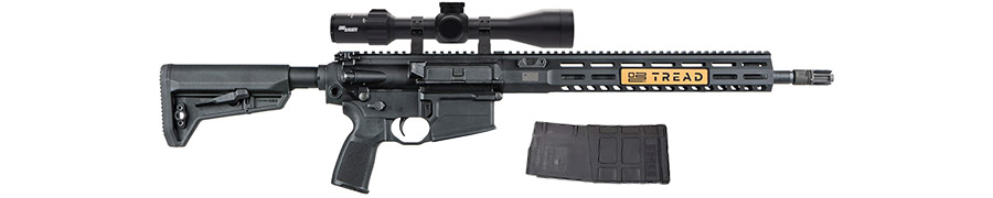 Familiar handling, unfamiliar power, Sig Sauer has taken the proven features of the SIG516 and lightweight aspects of the TREAD and applied them into a potent AR-based rifle chambered in 7.62 x 51mm. Utilizing the lightweight direct impingement system, an M1913 Mil-Std top rail, free-floating barrel, aluminum M-LOK forend and telescoping stock, the SIG716 Tread is the rifle of choice when you require the power of a larger caliber carbine at a more cost-effective price point.