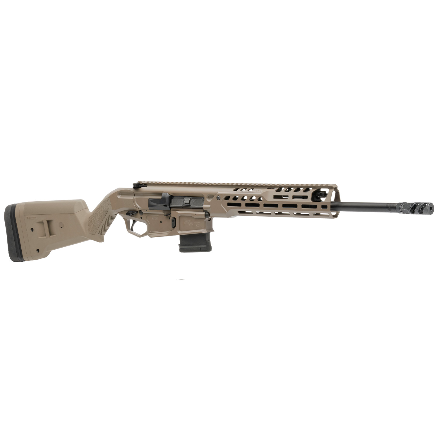 Description: Sig Sauer MCX-R Regulator Rifle, 5.56 NATO, 16" Barrel, 10 Round Magazine. Carrying an FDE Cerakote finish on its handguard, unique lower receiver, and MCX-compatible upper, the MCX-Regulator from Sig Sauer is a versatile and reliable 5.56x45mm chambered rifle boasting a stainless steel 16" barrel. Ideal for ranch use, this rifle is a versatile varmint hunting option. The Regulator ships with an adjustable Magpul SGA stock, has a Sig-designed muzzle brake on the 1/2" x 28 TPI barrel threads, an M-LOK handguard, and a 10 round capacity magazine. The MCX-Regulator also features an integrated ARCA rail on the lower receiver just behind the magazine well - a great point for tripod mounting. Built for reliability, the Regulator offers the same great quality as you would expect from any other Sig product and can be outfitted with many accessories to tailor to the shooters' comfort and situational needs.