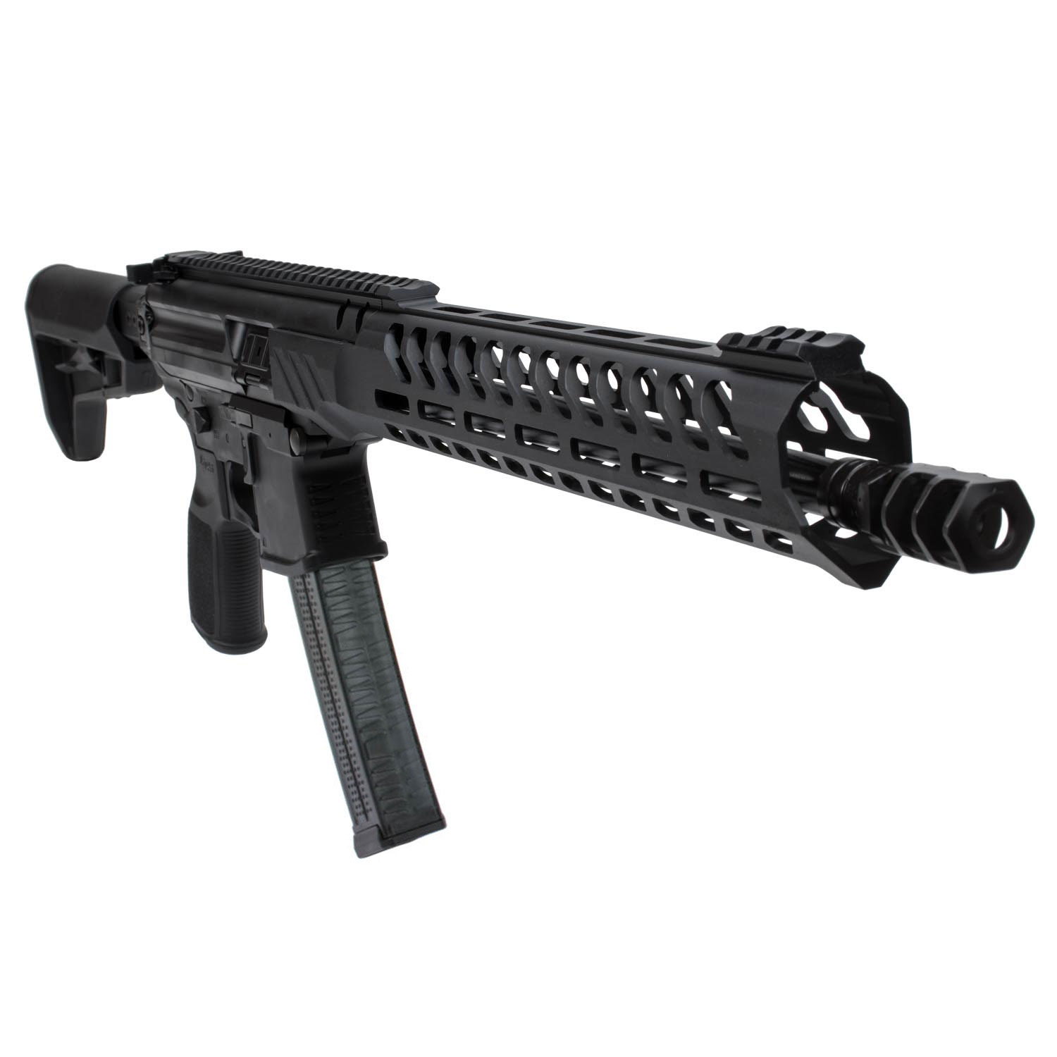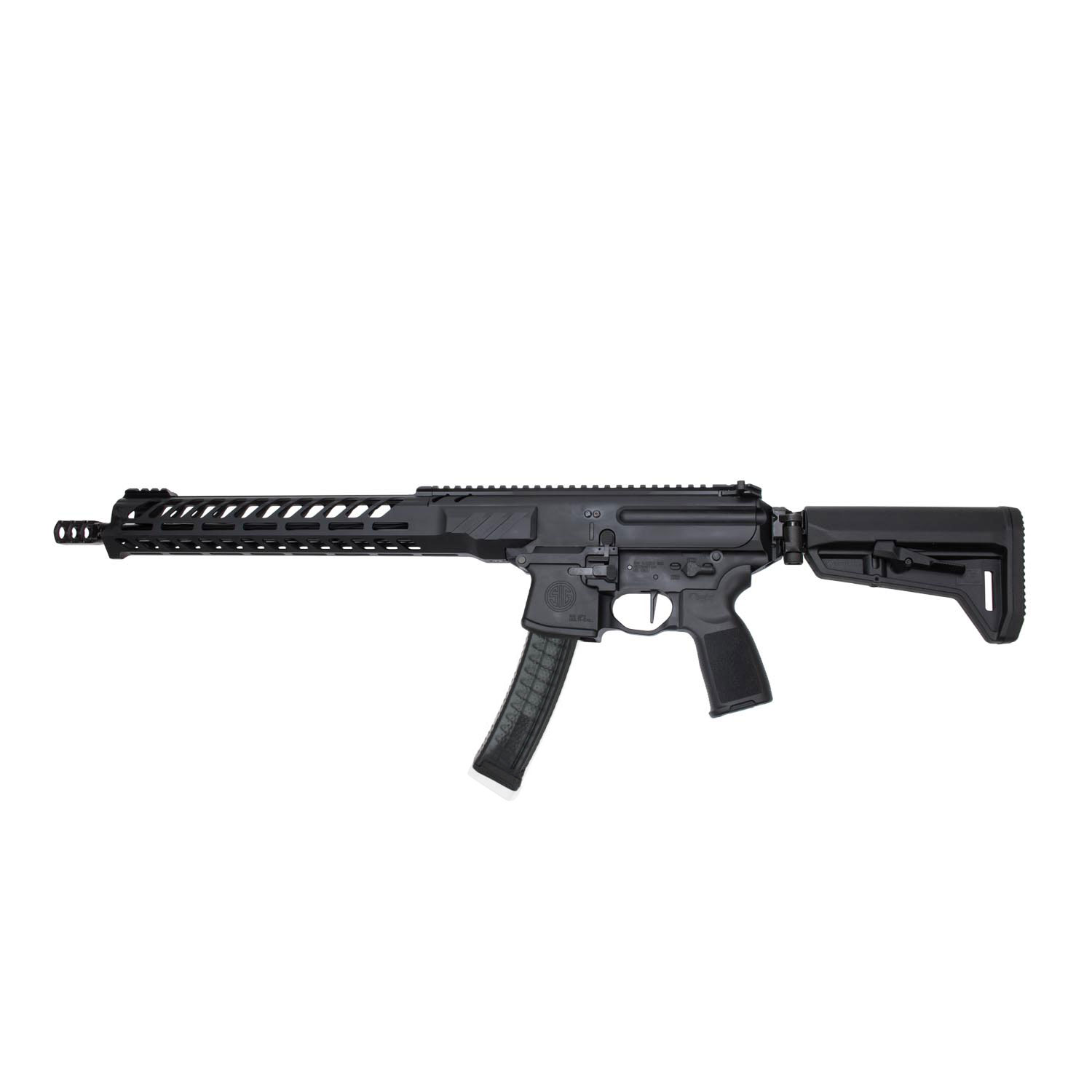 Description: Sig Sauer MPX PCC Rifle, 9mm 16" Barrel. Designed to be an out-of-the-box competition ready carbine, the MPX PCC blends performance, reliability and comfort into one package. Sig and Timney Triggers teamed up to develop the perfect straight single stage trigger to compliment this carbine. Along with a crisp pull and reset, the trigger is designed for superior longevity shot after shot. This MPX rifle from Sig Sauer is chambered in 9mm and boasts a full 16" carbon steel barrel with M13.5 x 1 threading and ships with a 3 chamber compensator for reducing muzzle jump / recoil. The stock of this firearm telescopes to 5 positions and folds to the side. The PCC has a slim free-floating M-LOK handguard to give more of an M4 feeling to the shooter. Ambidextrous selector switch, charging handle, bolt release and mag release makes this rifle ideal for any type of shooter. The MPX PCC ships with a 30 round MPX mag and boasts multiple sling attachment points on its quality crafted frame, truly making this firearm a must have for competition shooters.