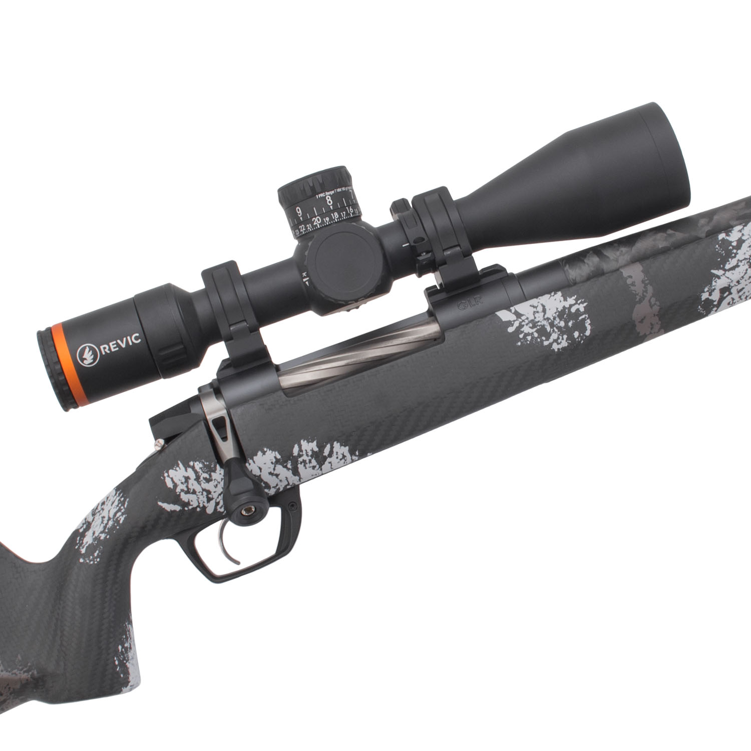 Installed via side-clamping scope rings, this rifle features the Acura RS25i 5-25x50 riflescope from Revic. This setup has a Gunwerks longrange Data Package tuned to 7 PRC Berger 7mm 180 gr. Hybrid Target rounds at an elevation of 4000 ft. and temperature of 60°F.