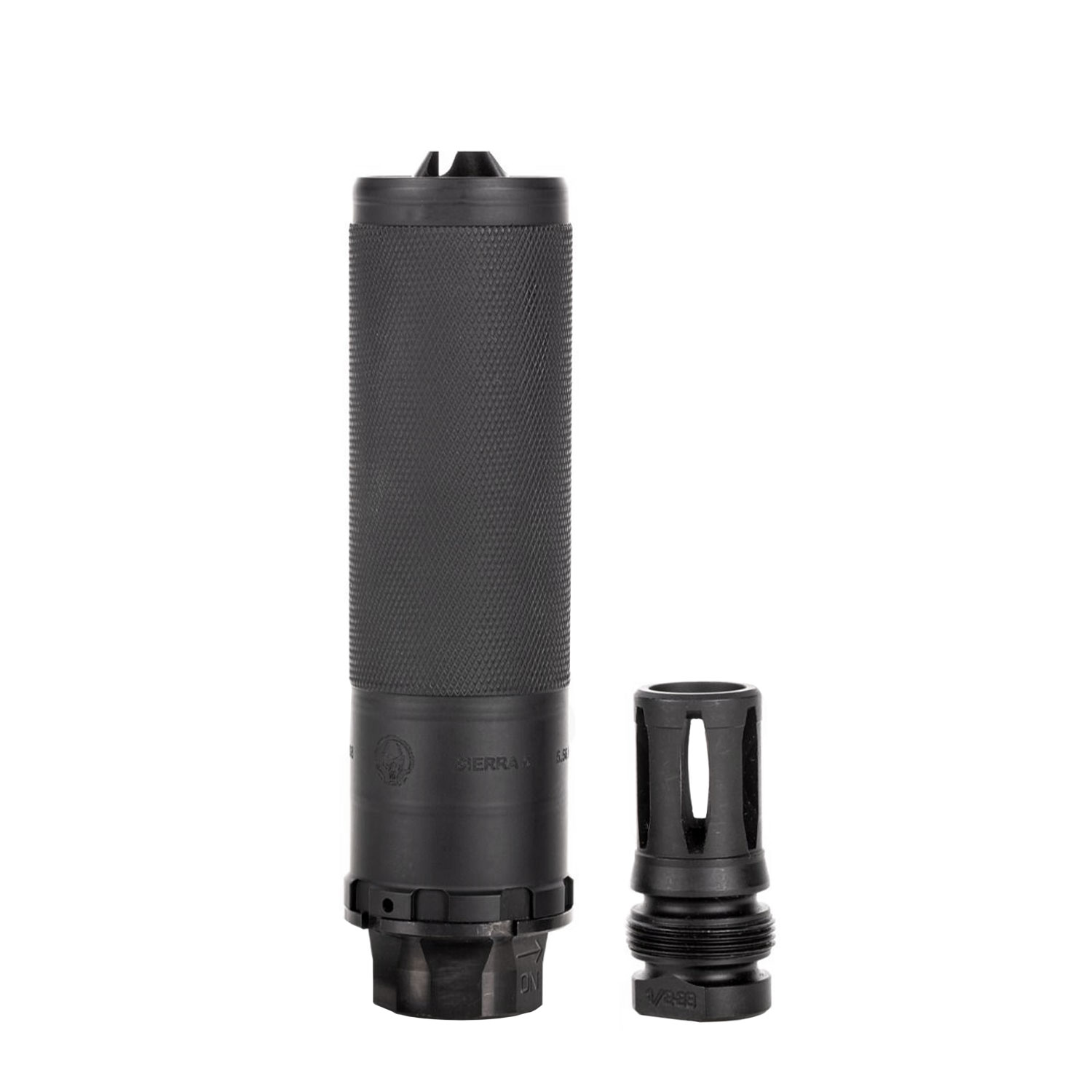 Description: Dead Air Sierra-5 Silencer, 5.56mm w/Xeno Adapter. Constructed of a strong stainless steel with Stellite baffles, the Sierra-5 suppressor from Dead Air Silencers is a reliable workhorse of sound mitigation for your rifle chambered in 5.56mm or other like calibers. Featuring a Xeno adapter that threads to the 1.375 x 28" HUB socket on the included 1/2" x 28 TPI direct threaded muzzle brake, the suppressor is easy to install and swap when needed. The Sierra-5 has a robust design weighing in at 13.3oz with total dimensions of 5.72" x 1.5". The Sierra-5 is compatible with all Dead Air R-Series front caps. Full-auto rated and designed with a large knurled area, the Sierra-5 silencer perfectly pairs with your favorite firearm giving you the unparalleled sound dampening power of Dead Air.