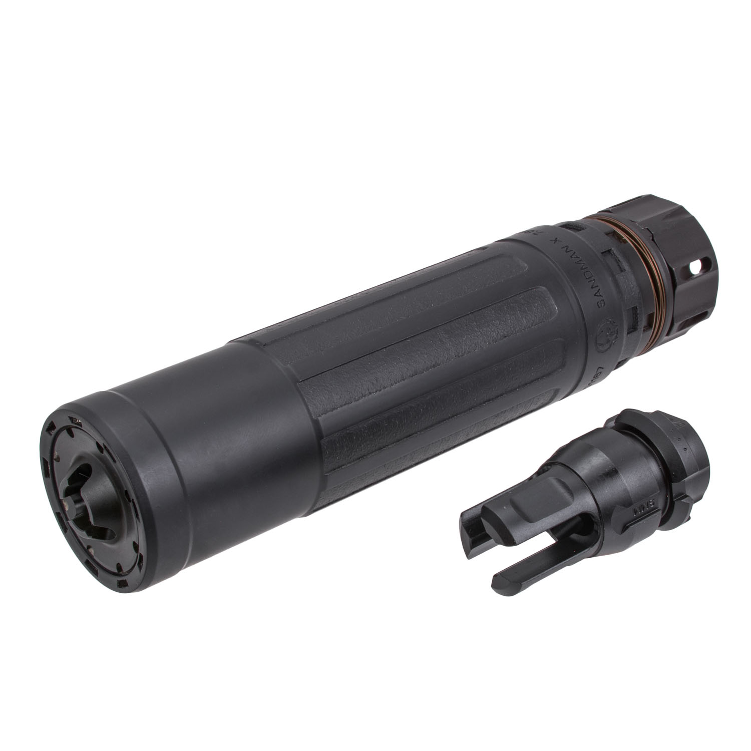 Conquer all. The Sandman X is a hard-use silencer designed to operate under extreme conditions on semi-automatic and fully automatic 7.62 NATO rifles, while retaining the performance characteristics to operate with multiple calibers.