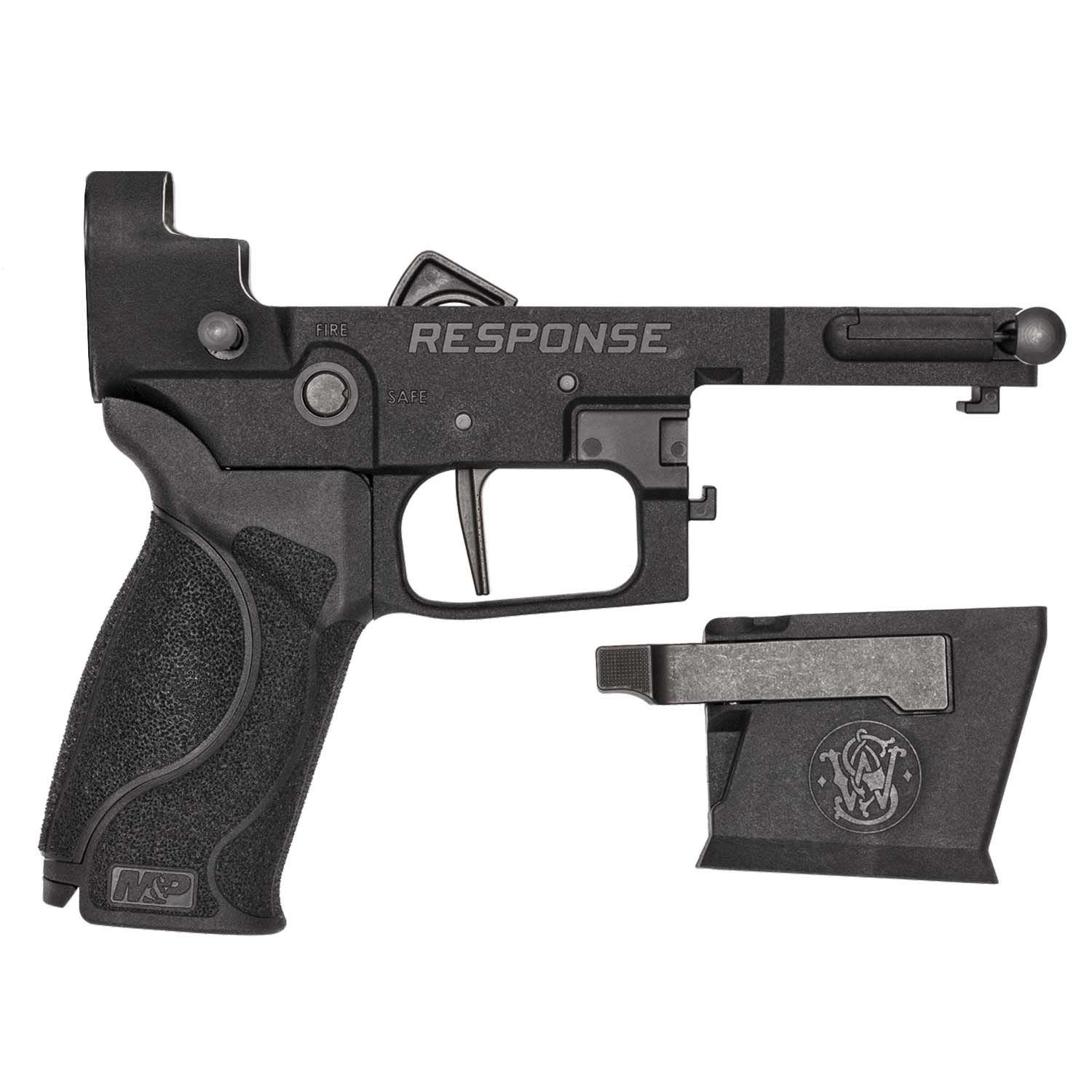 Description: Smith & Wesson Response 9mm Rifle w/ (2) 23rd Magazines. Built for versatility and solid performance, the S&W Response Series carbine from Smith and Wesson is an all-polymer rifle platform chambered in 9mm featuring the FLEXMAG system. This carbine boasts a 16.5" 4140 steel barrel firing via blowback operation and includes 1/2" x 28 TPI barrel threads. The Response is compatible out of the box with M&P full-size and compact pistol double-stack magazines and includes two 23 round M&P mags. The rifle also ships with a Glock patterned FLEXMAG magazine well that can be swapped out to accept Glock G17/G19 magazines. Upgrade your at-the-ready arsenal with this quality-made S&W pistol-caliber carbine.
