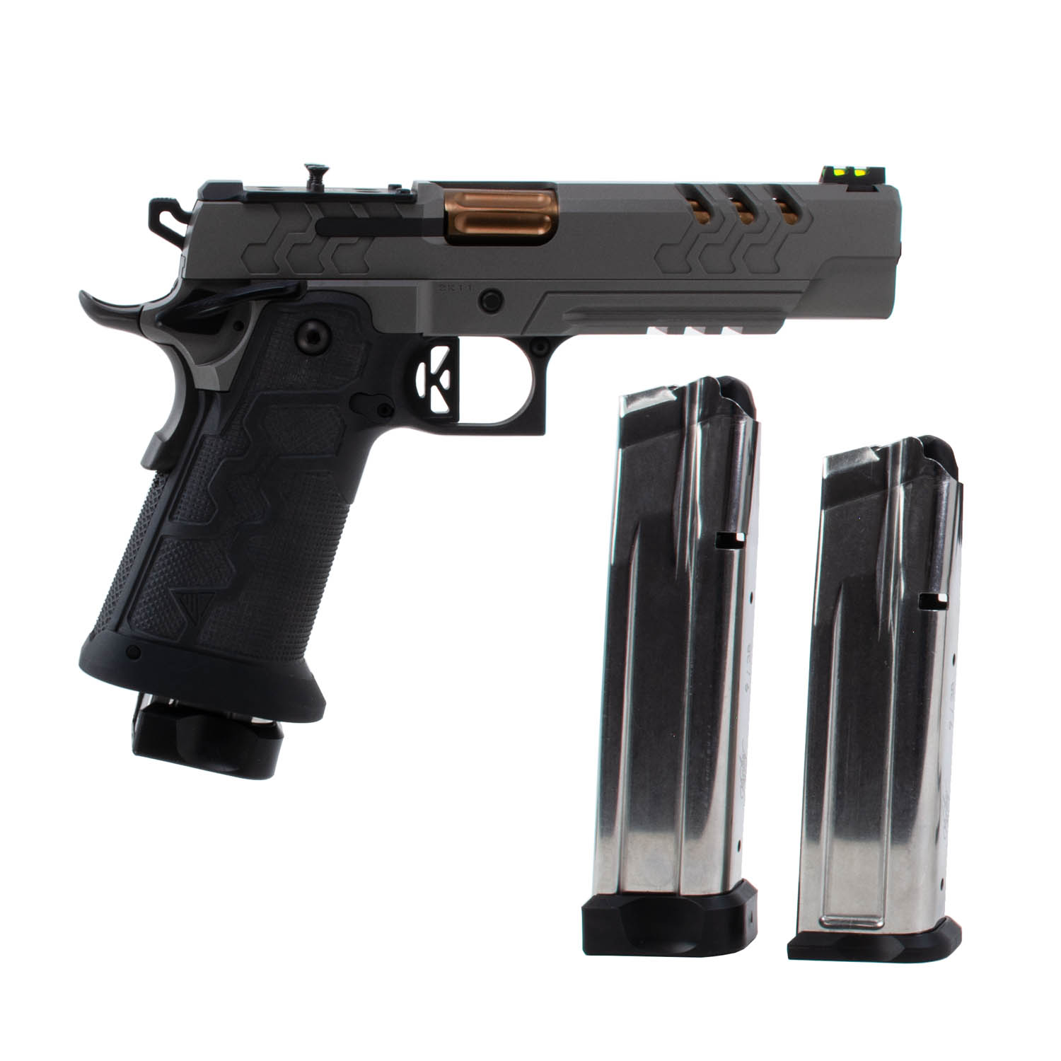 Description: Kimber 2K11 Stainless Target (OR) Pistol, 9mm, 20 Round Magazine. From the hammer to the muzzle, the 2K11 has been designed with all the features Kimber enthusiasts requested. The firearm is pre-owned but the pistol and magazines have been tested to ensure proper functionality. It includes an enhanced sub-frame shaped for superior magazine fit and control, along with an accessory rail for optional lights and lasers. The slide is made of stainless steel and features an external extractor for incredible reliability-a ramped barrel aids in consistent feeding. The new MJD Designs Kevlar and carbon fiber grip deliver superior strength and echo the slide serrations found on this model. This model of the 2K11 comes with an optics-ready slide, complete with a pre-installed optics cover plate.