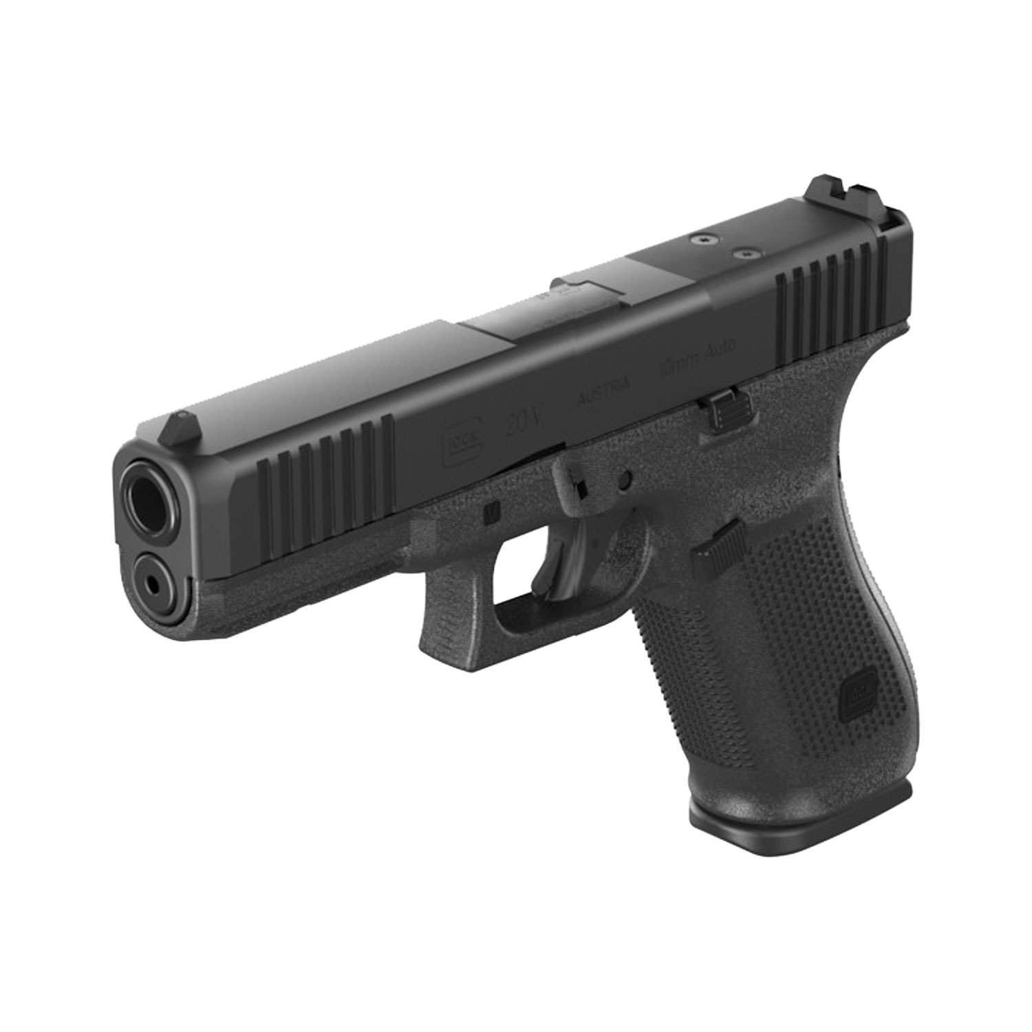 Description: Glock 20V MOS 10mm Pistol w/ Front Serrations, 3 - 15 Round Magazines. The GLOCK 20 V MOS pistol is full-size for maximum capacity and performance, chambered in 10mm AUTO. The slide is precision-machined to provide a mounting system for popular red dot optics. You can quickly and easily mount red dot sights to the slide using adapter plates. The G20 V MOS pistol features the GLOCK Marksman Barrel, nDLC surface finish, front serrations, an ambidextrous slide stop lever, and more.