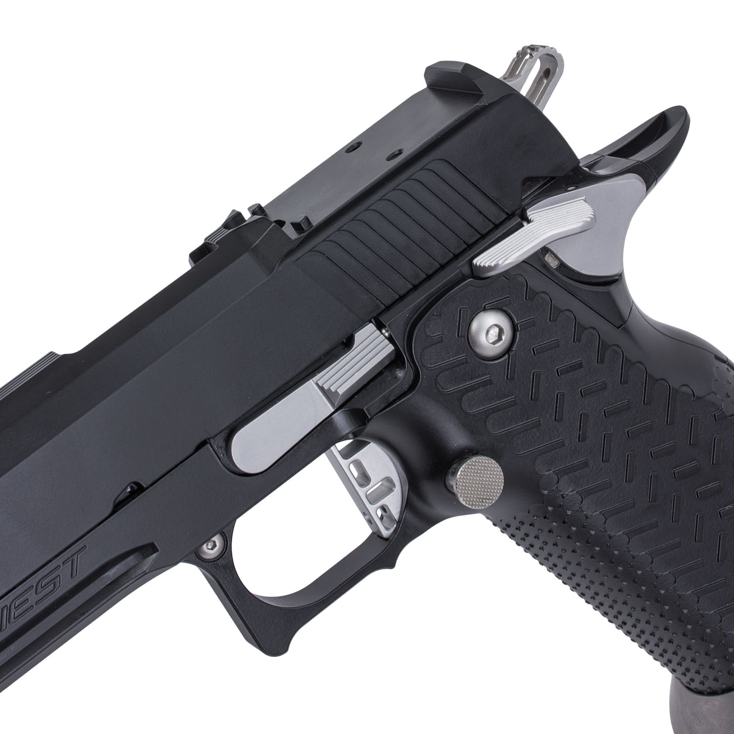 This Priest features the Standard Dust Cover slide style which has geometry at the front of the pistol similar to a standard 1911.