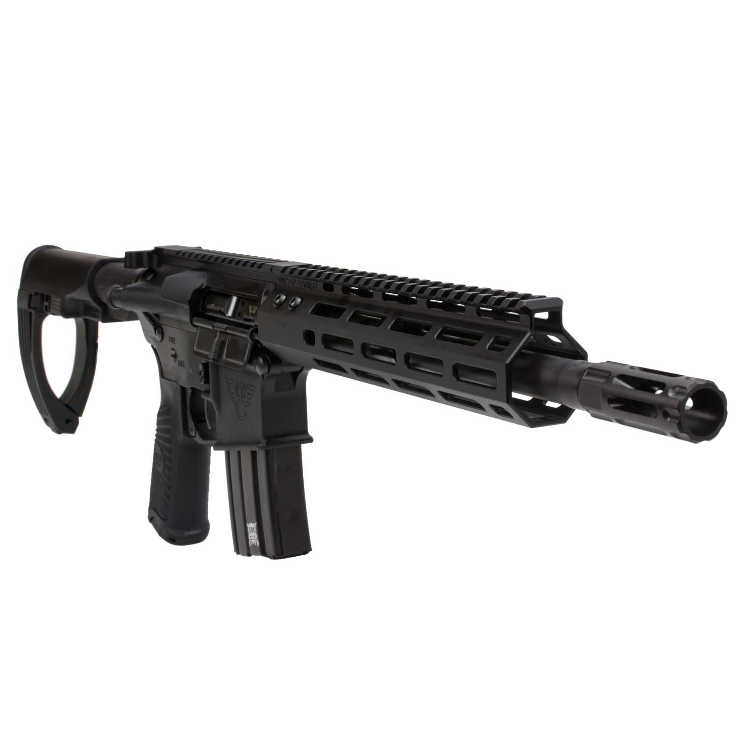 Description: Wilson Combat .300 Blackout 11.3" Protector Pistol, Black. Made for performance and reliability, the Protector series of AR carbine pistols from Wilson Combat gives you match-grade results with every shot. Chambered in the popular .300 Blackout, this pistol boasts an 11.3" match-grade button rifled barrel along with the Wilson Combat M2 two-stage TTU trigger unit with a crisp 4 lbs. pull. This AR pistol features a black Armor-Tuff finish, has a 5 position Tailhook Mod 2 adjustable brace and the Q-Comp flash hider/muzzle brake that reduces muzzle rise and flash signature while not increasing muzzle blast. Upgrade your arsenal today with this very capable and powerful pistol.