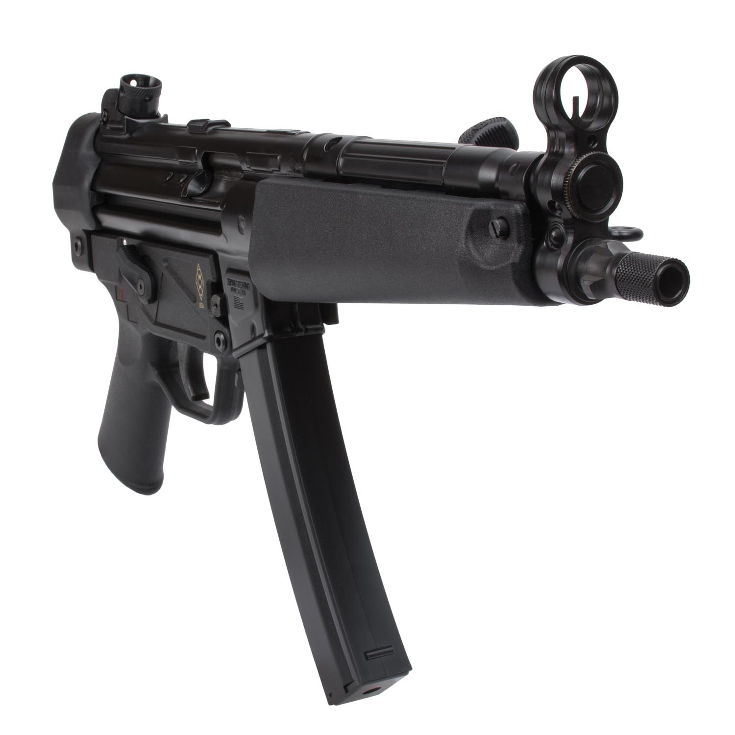 The ZF-5 is a semi-auto MP5 style firearm featuring a roller-delayed blowback operating system, Pic rail, & a cold hammer-forged barrel. The American Made ZF-5 is a full-size close quarters pistol that pairs the versatile 9mm cartridge with a performance maximizing barrel length, sight radius, and tropical wide forearm. While the ZF-5 is a perfect base for short-barreled-rifle conversions, it is also a highly effective pistol that affords iron-sight accuracy at distances exceeding 100 meters.